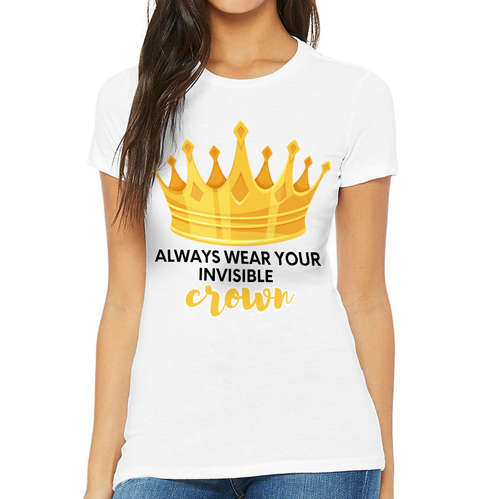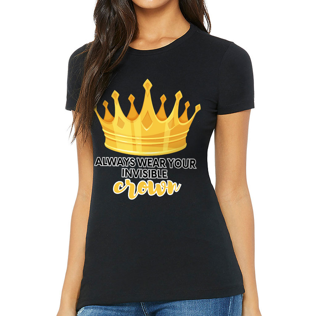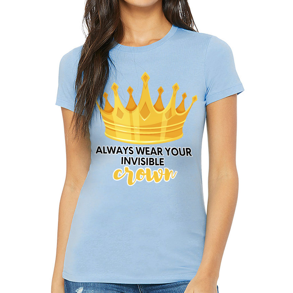Always Wear Your Invisible Crown Slim Fit T-Shirt fits like a well-loved favorite, featuring a slim feminine fit, crew neck, short sleeves and superior combed and ring-spun cotton. This t-shirt feels amazing all day long. Our products provide the highest standards of quality and comfort.