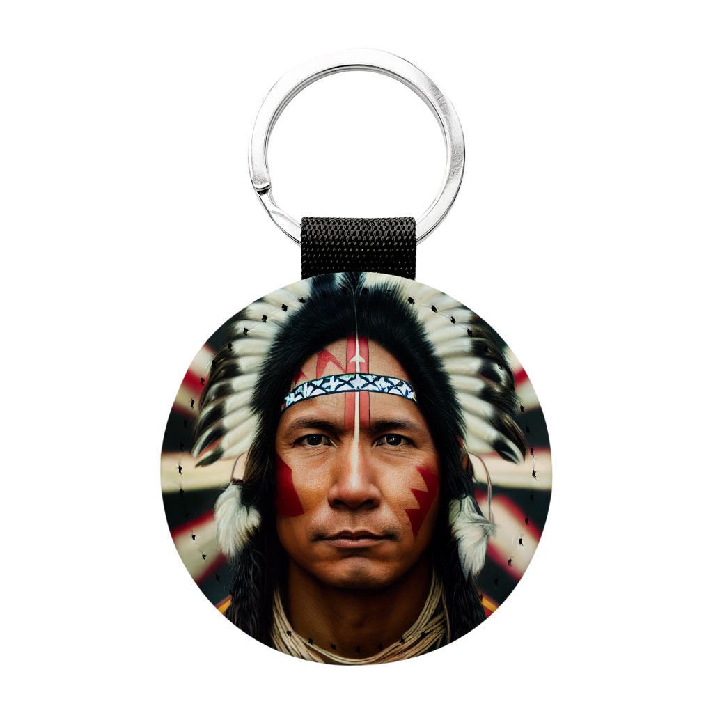 American Indian Round Keychain is made of PU leather; It is a lightweight but durable material. Ring material: Stainless steel.
