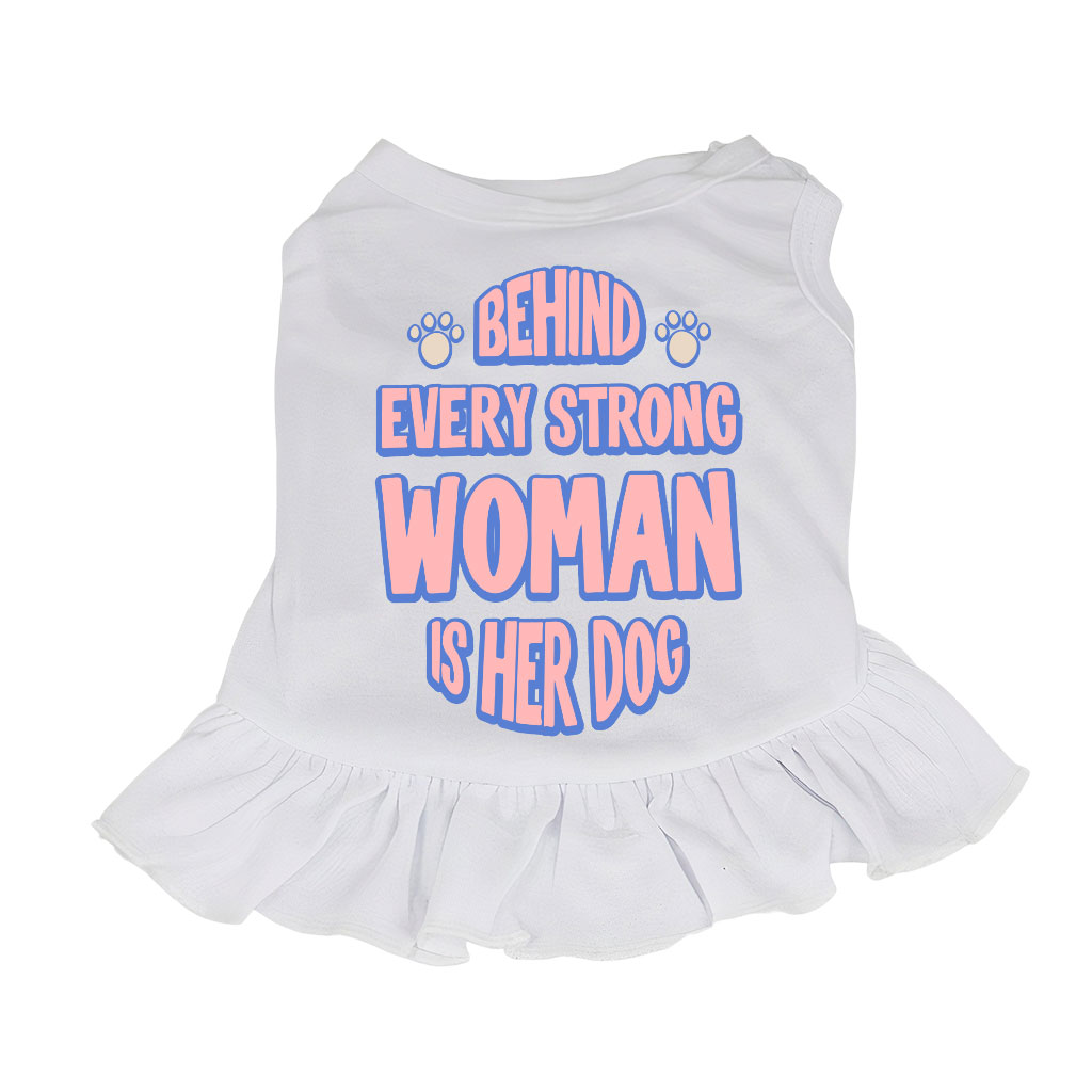 Behind Every Woman Is Her Dog Dog Sundress is made of breathable material, the dog dress is light and soft, and will not hurt the dog’s skin; Extremely light fabric keeps your pet at ease; It gives your pet nice comfort when wearing it, especially in the hot summer.