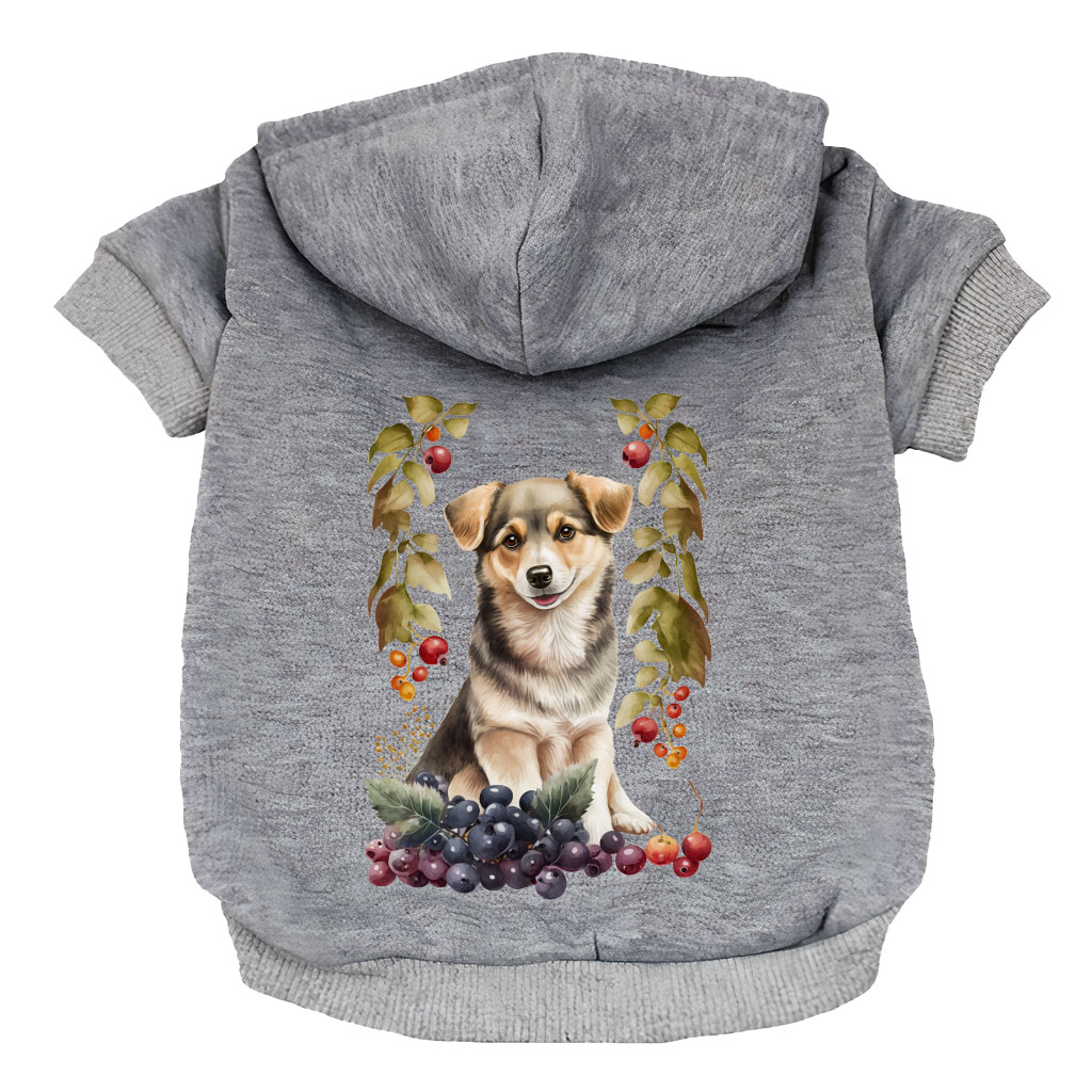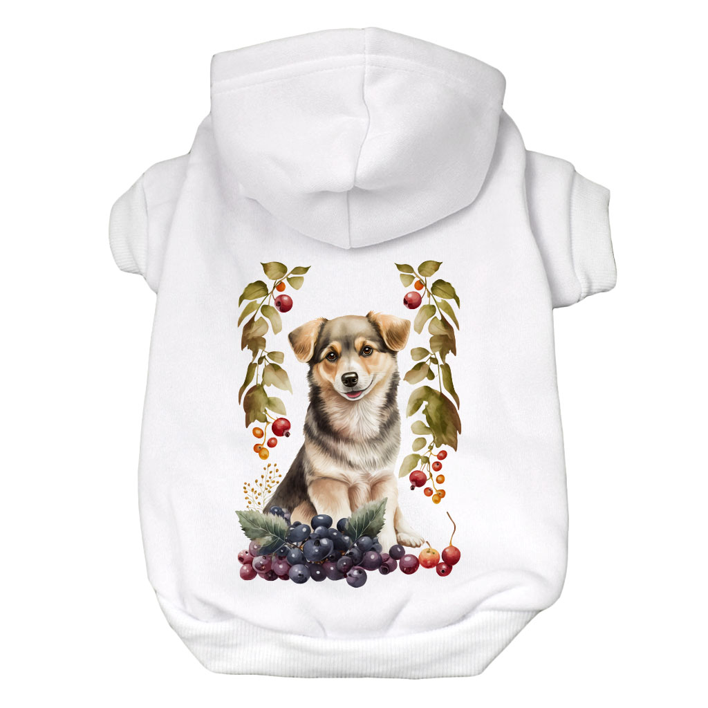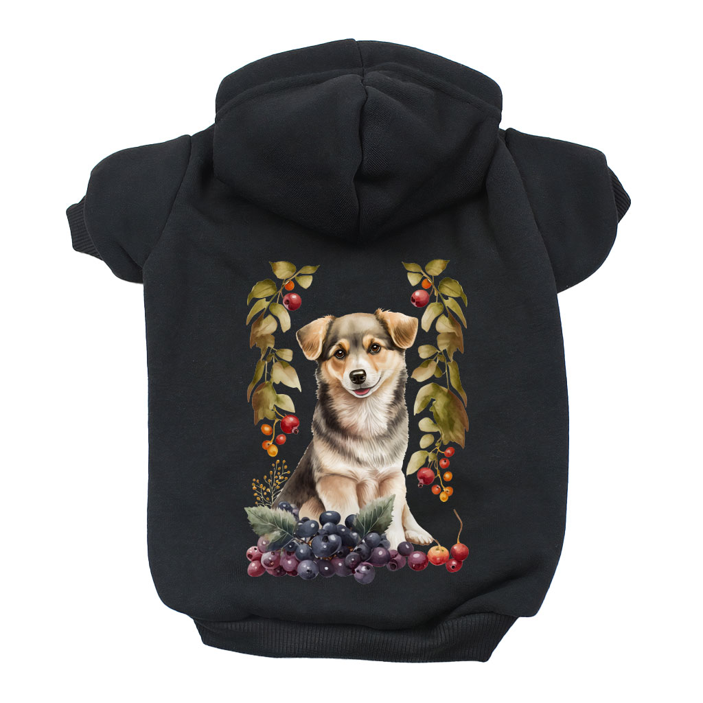 Comfortable, breathable coat to keep your dog warm in cold weather. Berries Painting Dog Hoodie is designed for winter or autumn weather, it has ribbed sleeves and hem for a comfy fit.