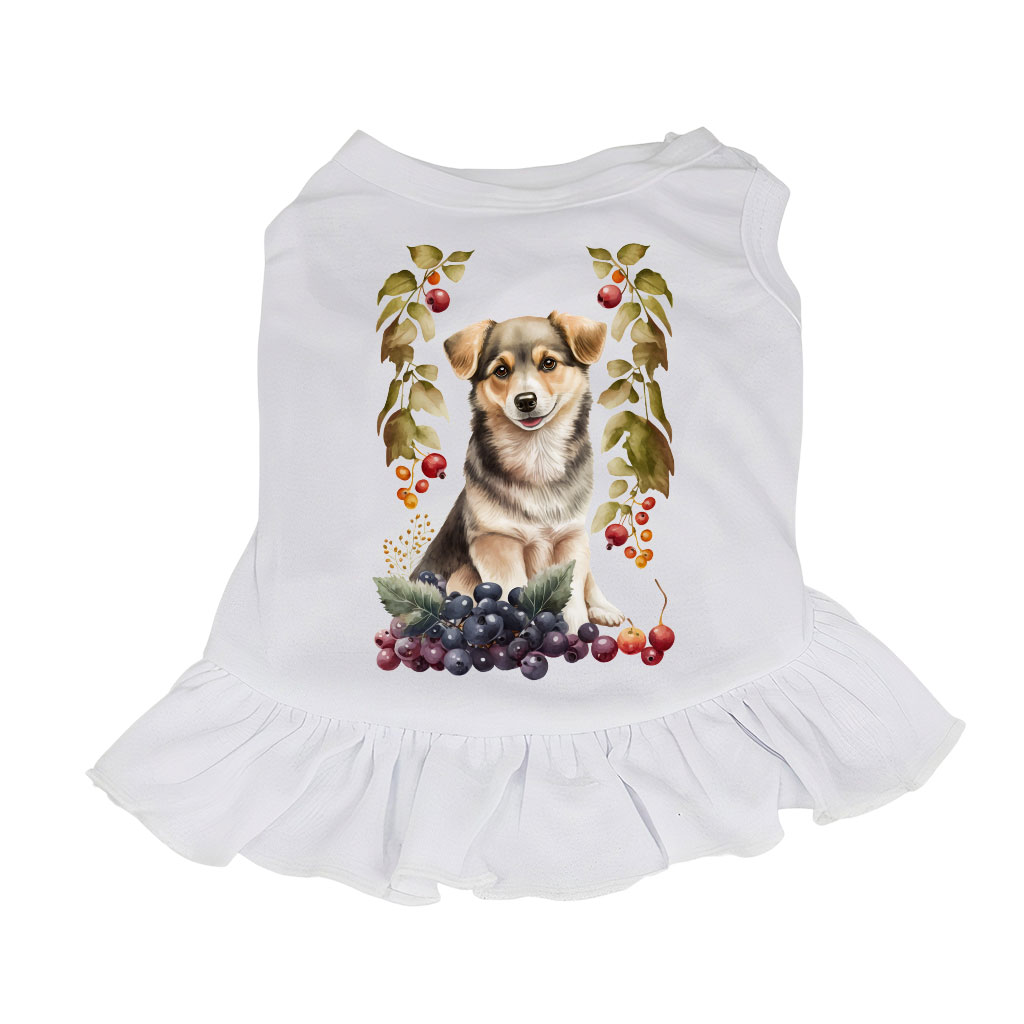 Berries Painting Dog Sundress is made of breathable material, the dog dress is light and soft, and will not hurt the dog’s skin; Extremely light fabric keeps your pet at ease; It gives your pet nice comfort when wearing it, especially in the hot summer.