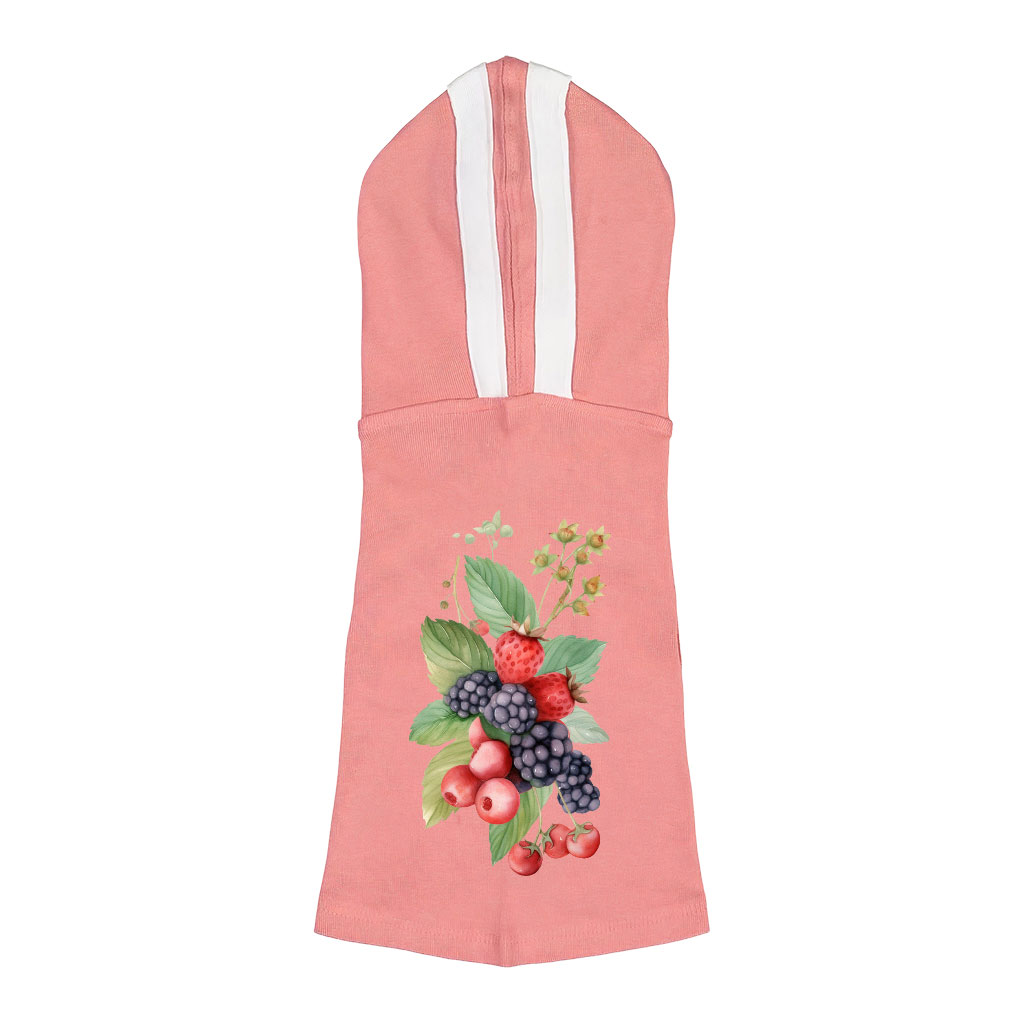 Berries Print Dog Shirt with Hoodie will keep your dog warm without adding any weight. The cuffs and hem are designed with elastic ribs to effectively lock in warmth. Also, this hoodie retains its shape well after washing.