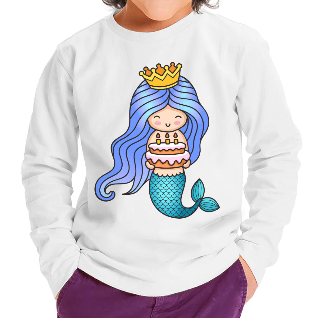 Birthday Mermaid Toddler Long Sleeve T-Shirt – Cake Kids’ T-Shirt – Art Long Sleeve Tee