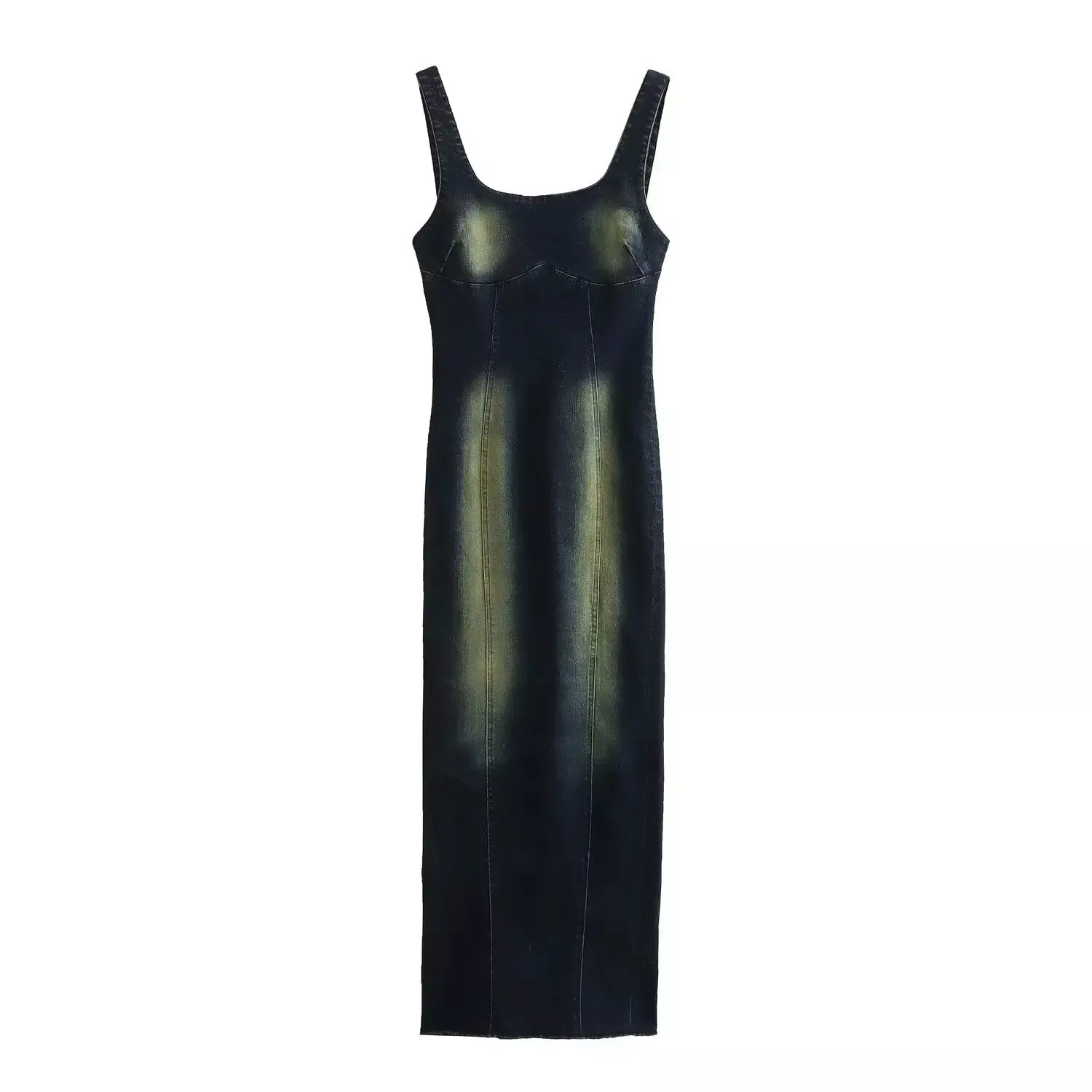 What makes our Blue Denim Corset Maxi Dress special? It’s the careful attention to detail – from the subtle stretch that hugs your curves just right to the sophisticated O-neck that frames your collarbones. The backless feature adds a touch of daring, balanced by the modest ankle-length. It’s a straight silhouette that flatters without constriction, ensuring you can move with grace.