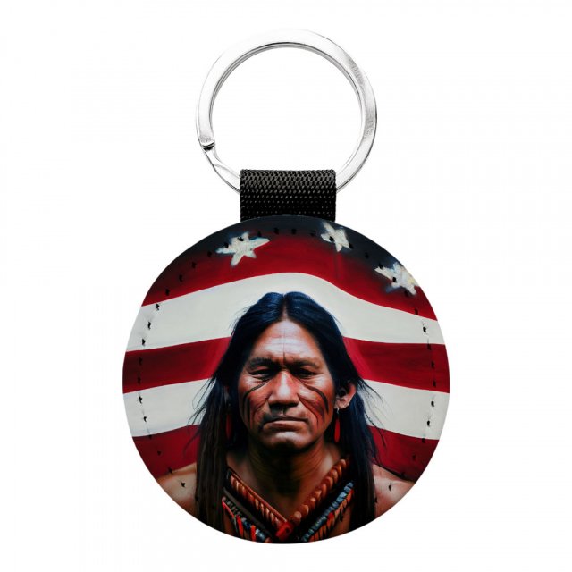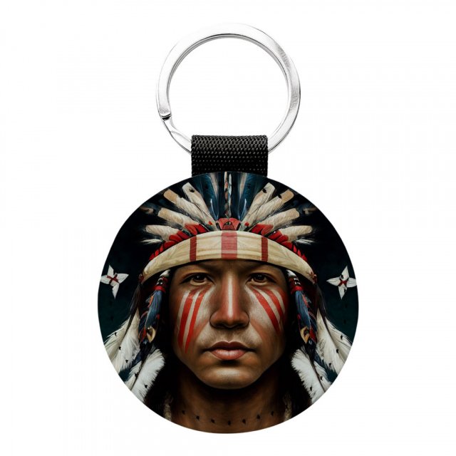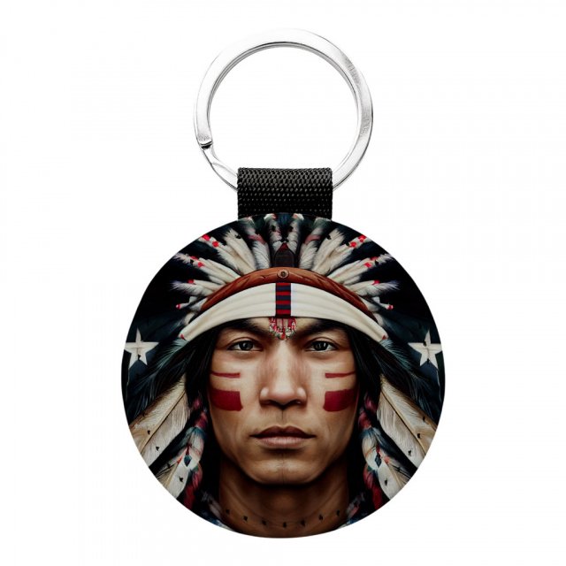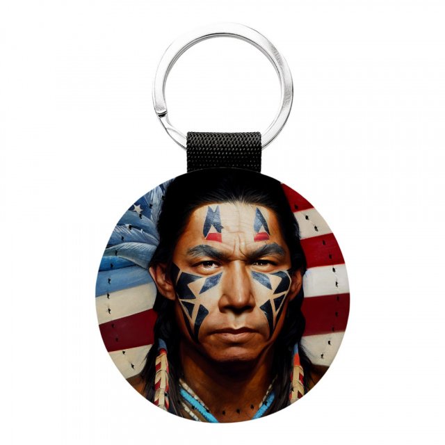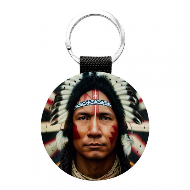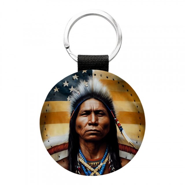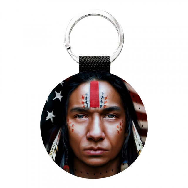 American Indian Round Keychain – Cool Key Ring – Art Print Round Keychain