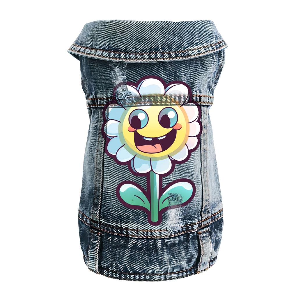 This soft denim cotton blend material keeps your dogs feeling light and comfortable. Retro jeans jacket style and lapel collar will emphasize the unique style of your pet. Furthermore, Cartoon Chamomile Dog Denim Vest is easy to put on and take off, so it takes short time to use and reduces pet anxiety.