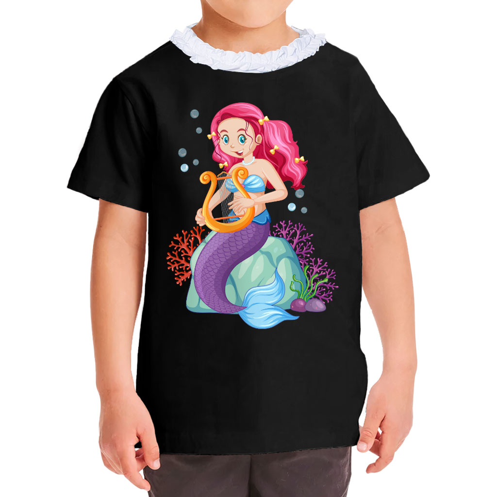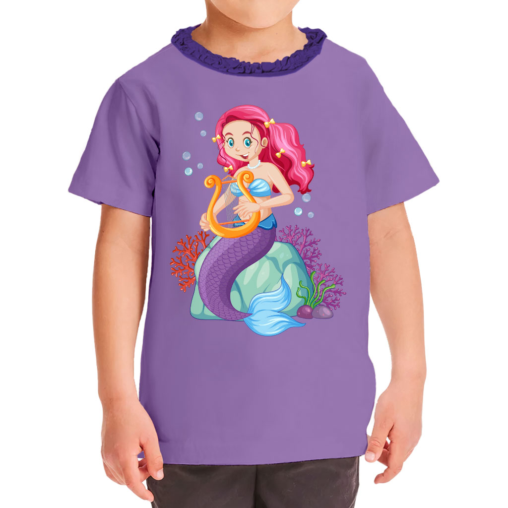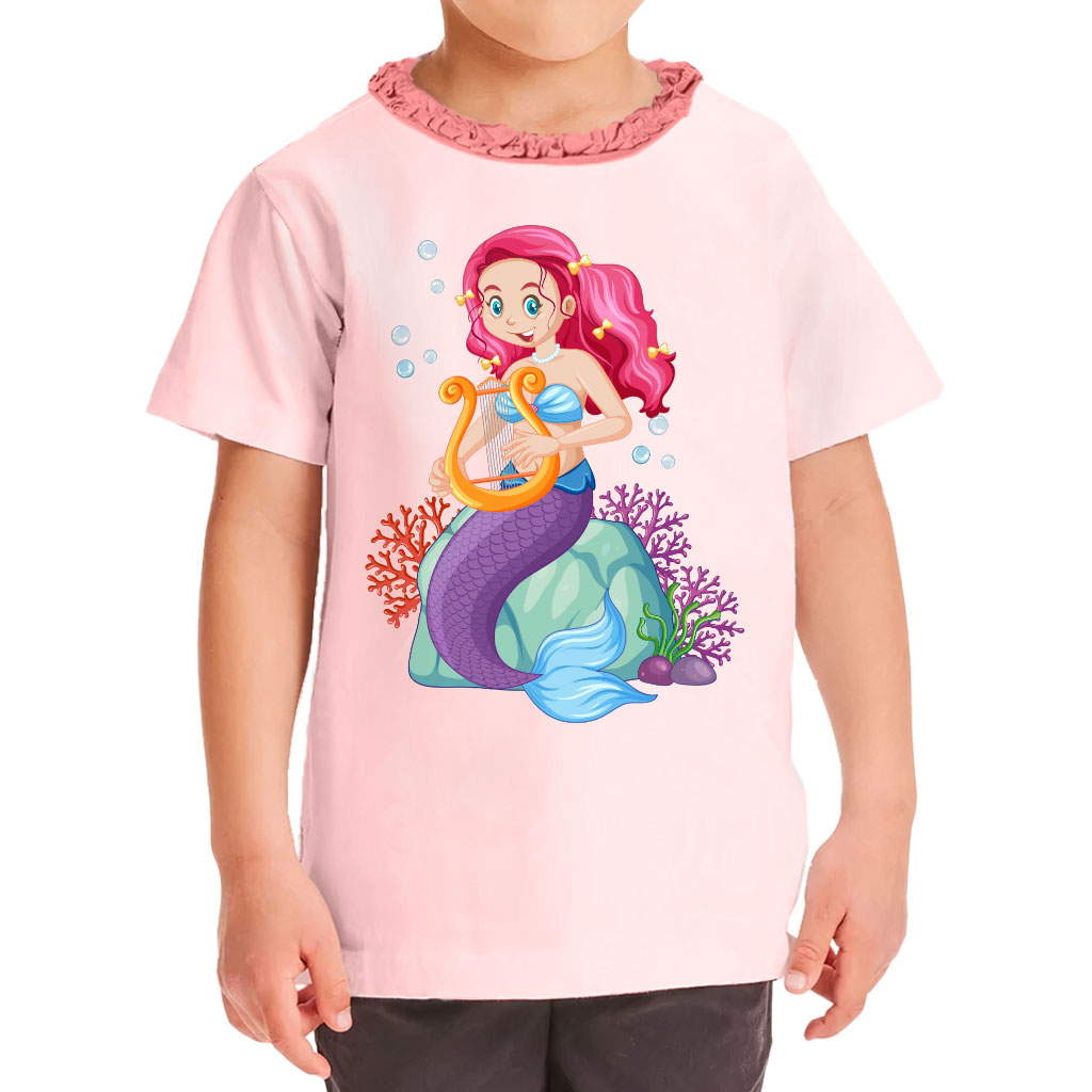 Cartoon Mermaid Girls’ Ruffle Neck T-Shirt