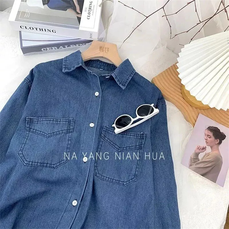 Elevate Your Spring Style with the Casual Pocket Loose Denim Shirt!