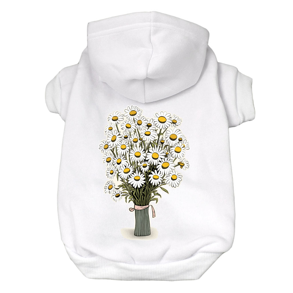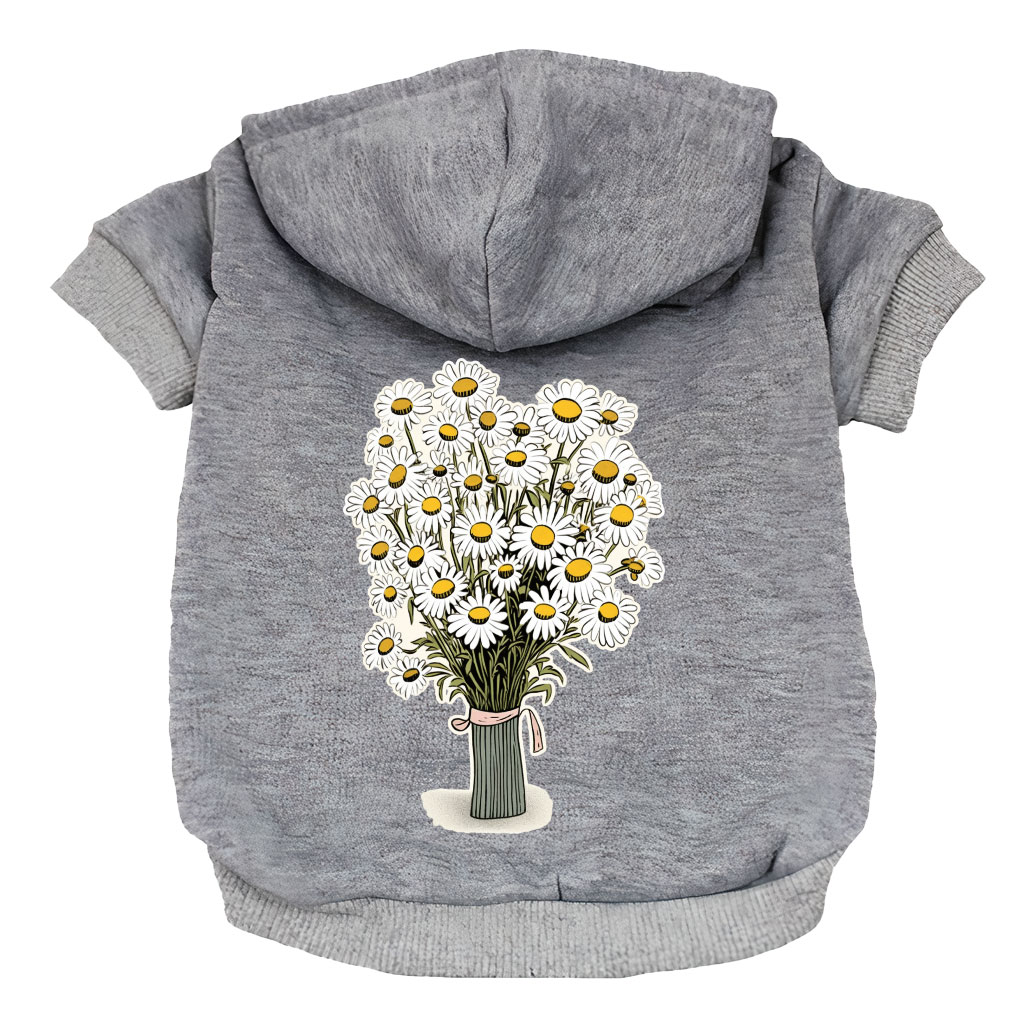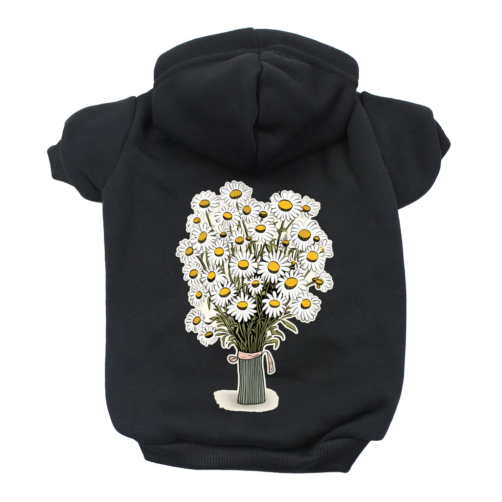 This fun dog sweater outfit slips on and off easily. Chamomile Bouquet Dog Hoodie is made with high-quality cotton fabric, and provides cozy warmth with soft Sherpa fleece lining.