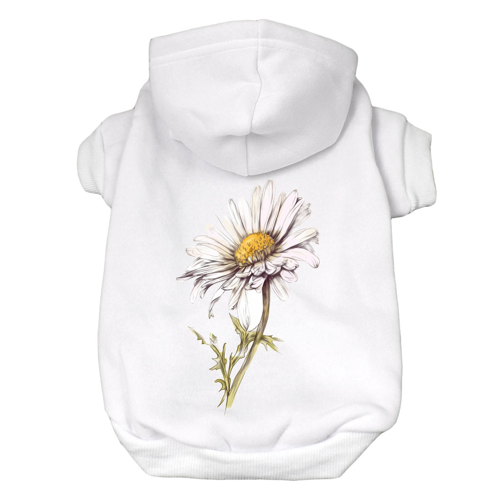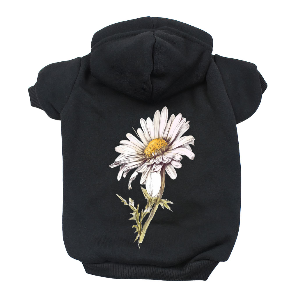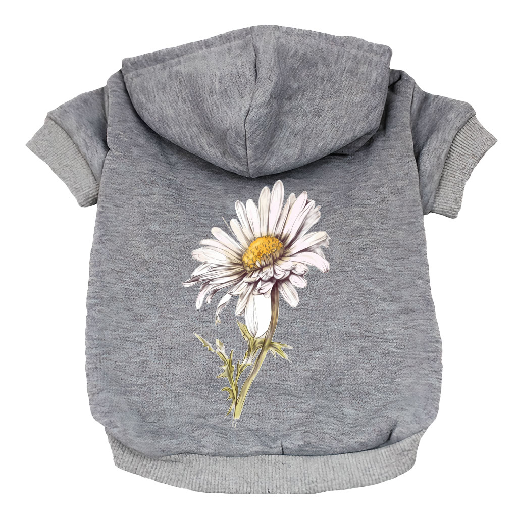 Comfortable, breathable coat to keep your dog warm in cold weather. Chamomile Print Dog Hoodie is designed for winter or autumn weather, it has ribbed sleeves and hem for a comfy fit.