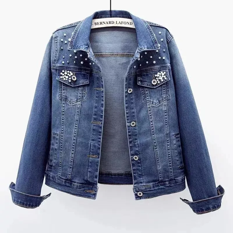 Step into the season with confidence in our Chic Pearl-Embellished Denim Jacket, tailored for the modern woman who appreciates a blend of classic style and contemporary flair. As the breeze turns warmer, this is the quintessential overcoat to transition your wardrobe into spring and summer effortlessly. Whether you’re 25 or 34, make a statement in any casual setting with a jacket that speaks volumes about your impeccable taste.