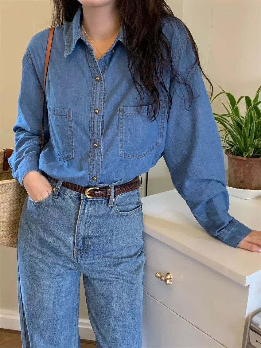 Step into the season with a breezy, effortless vibe with our latest arrival – a must-have Spring Denim Blouse for women. Specially designed for those who covet a blend of casual charm and polished elegance, this all-match denim top is your perfect partner for various occasions. Whether you’re heading to the office or enjoying a laid-back weekend, this stylish piece promises to elevate your ensemble with a touch of laid-back sophistication.