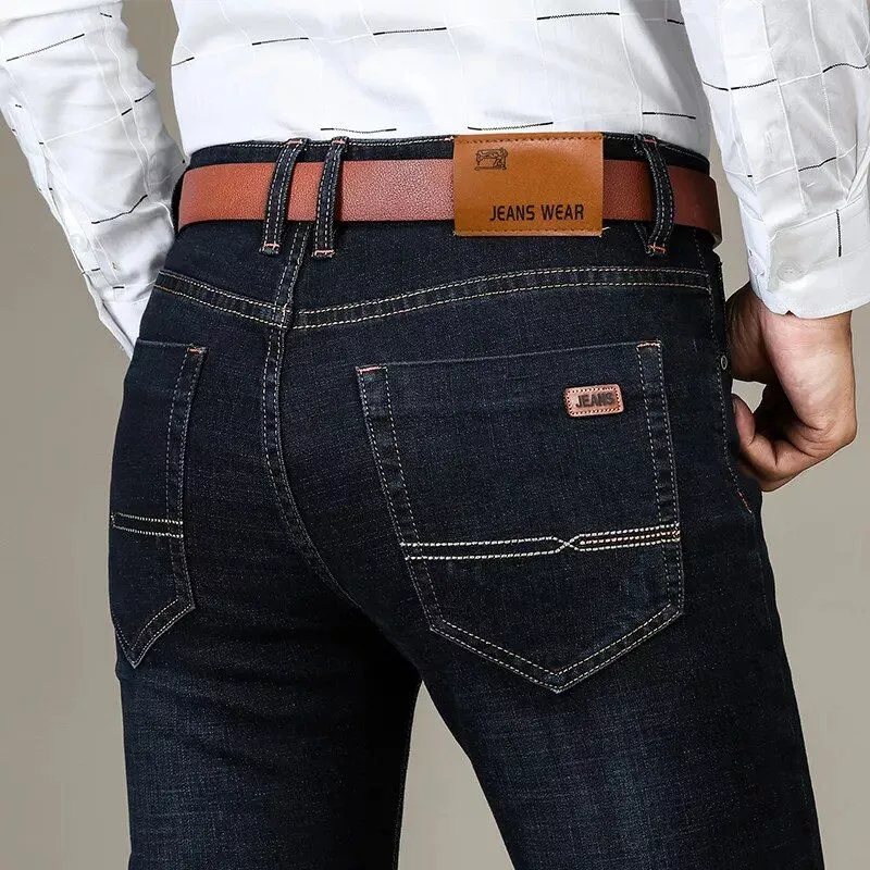 Meet the quintessential must-have for your wardrobe that effortlessly bridges the gap between casual comfort and business-appropriate style. Our Classic Stretch Straight-Leg Men’s Denim Jeans are meticulously crafted to offer a timeless look while catering to your dynamic lifestyle. Boasting a harmonious blend of 74.7% cotton, 23.5% polyester, and a touch of 1.8% spandex, these jeans offer the perfect stretch to keep up with your every move. Ideal for autumn wear, they’re a staple that ensures you look put together in any setting.