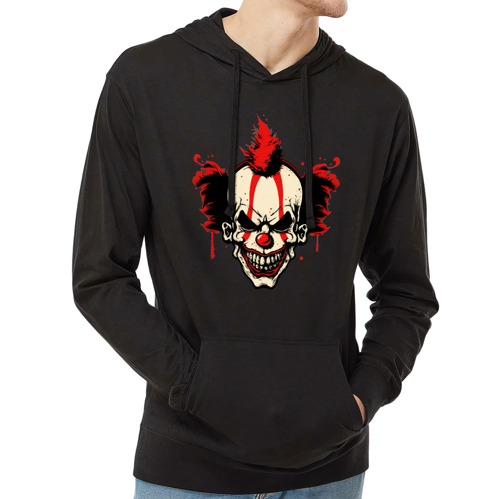 Clown Skull Lightweight Jersey Hoodie works easily with a variety of outfits and is perfect for pairing with shorts, jeans, sneakers, and more. Suitable for summer, spring, autumn, and winter.