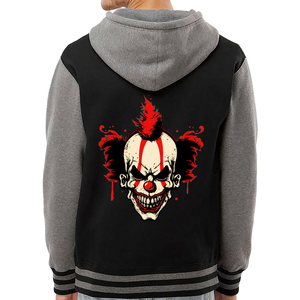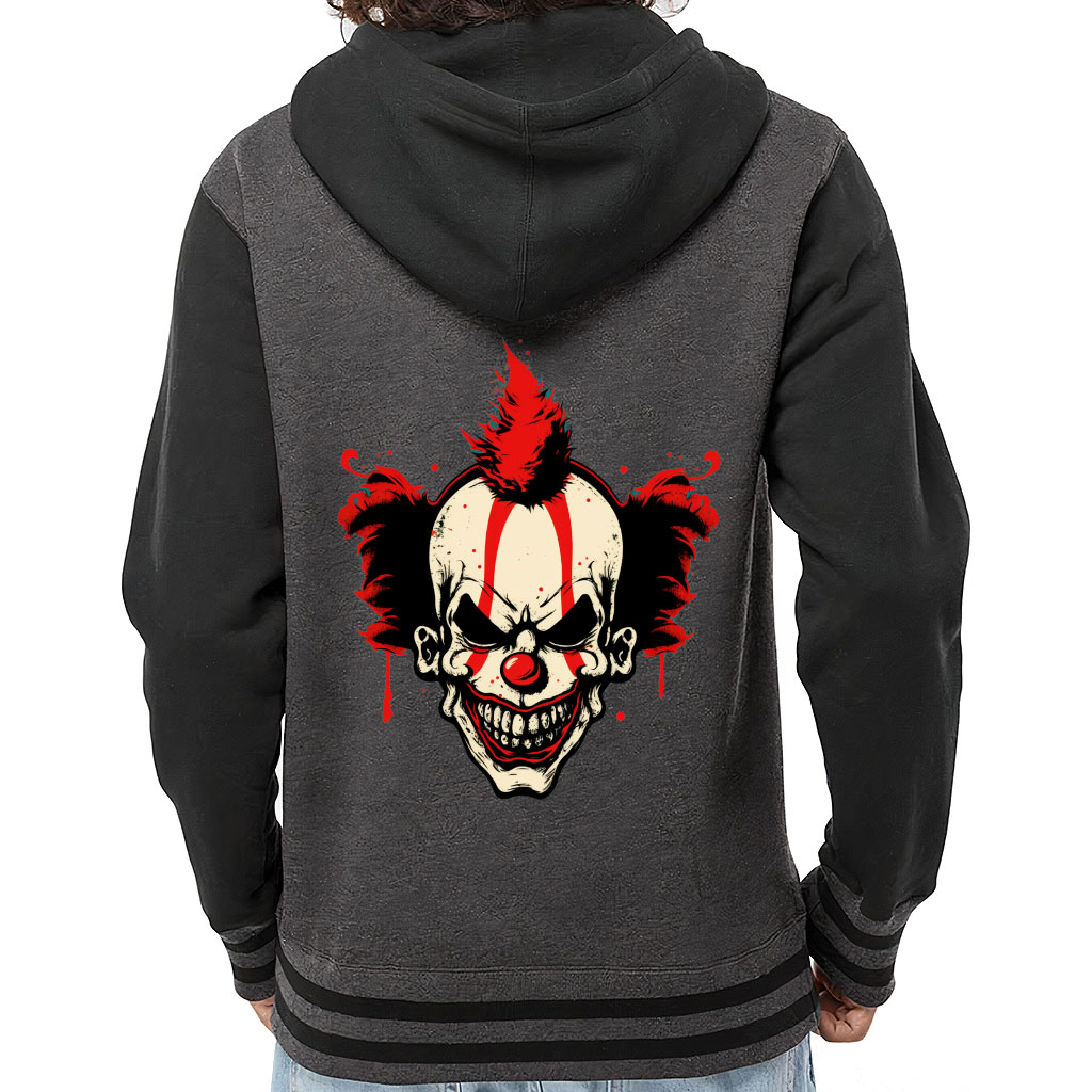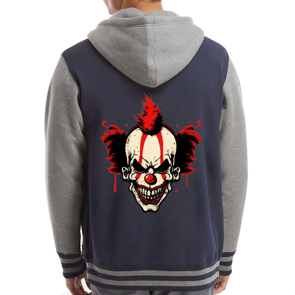 An essential closet staple, Clown Skull Varsity Hoodie is a go-to classic for hiking, training, or just kicking back. Pair it with your favorite shorts, athletic pants, jeans, or any pants you like.