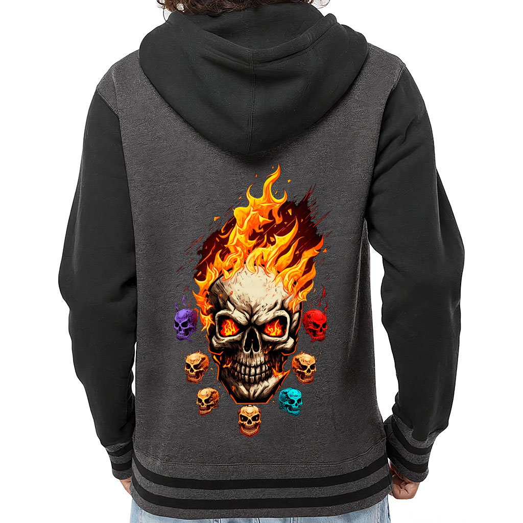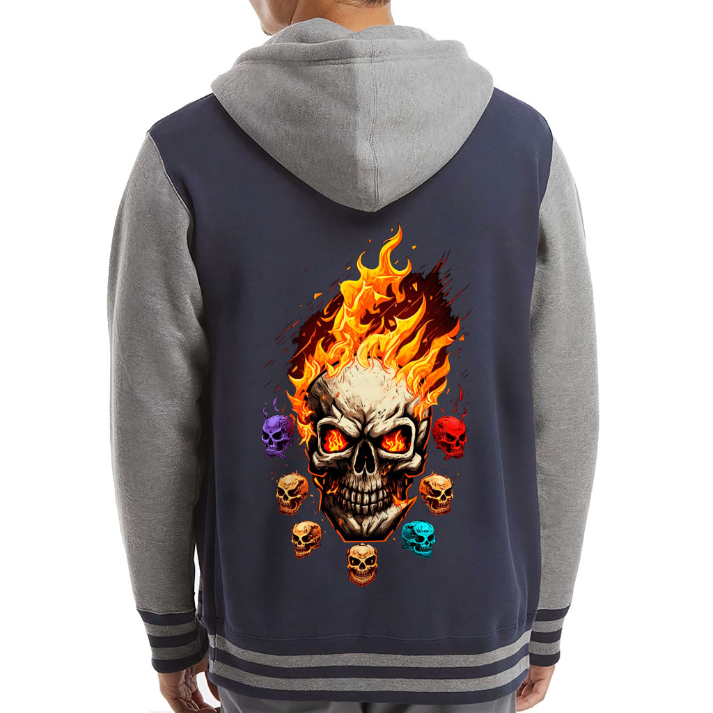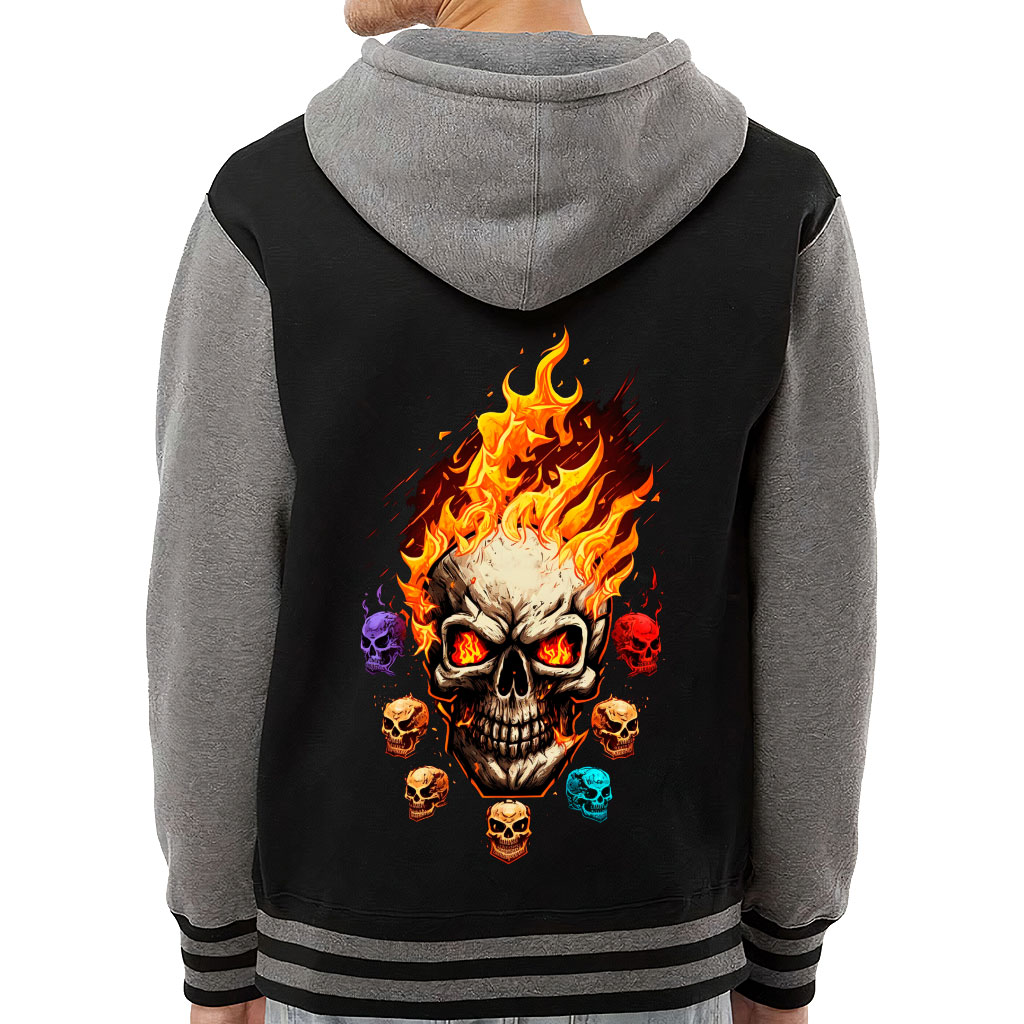 An essential closet staple, Colorful Skull Varsity Hoodie is a go-to classic for hiking, training, or just kicking back. Pair it with your favorite shorts, athletic pants, jeans, or any pants you like.