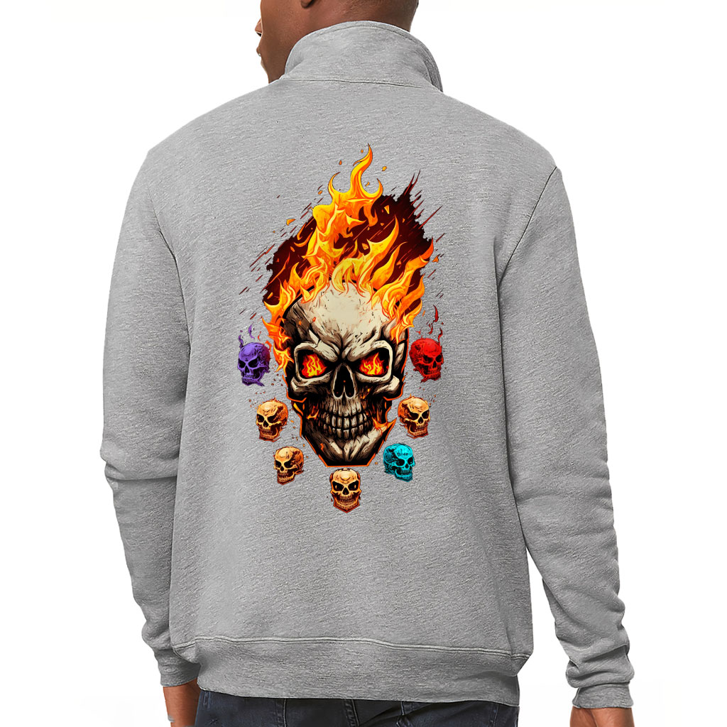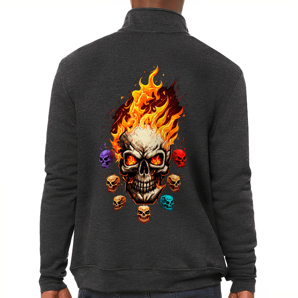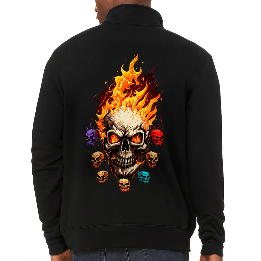 Colorful Skull Zip Pullover is comfortable and cool! This incredibly soft fleece pullover combines a sophisticated quarter zip, set-in sleeves and hidden side pockets.