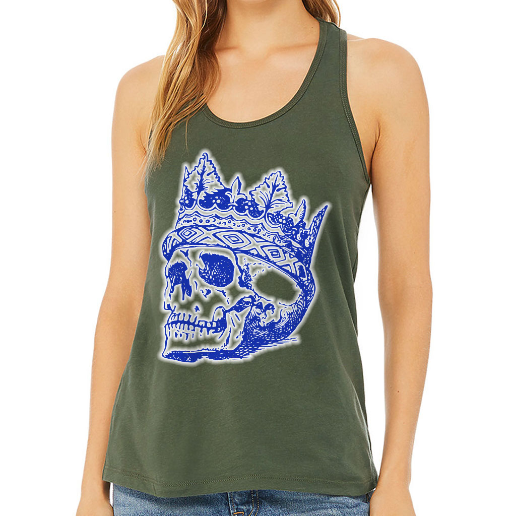 Women can wear our racerback tank top in a gym, on a race track, or spend leisure time at their homes. Skull Workout Tank has a perfect length for women to get involved in activities demanding much effort.