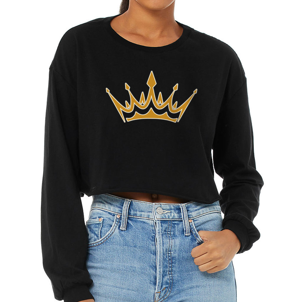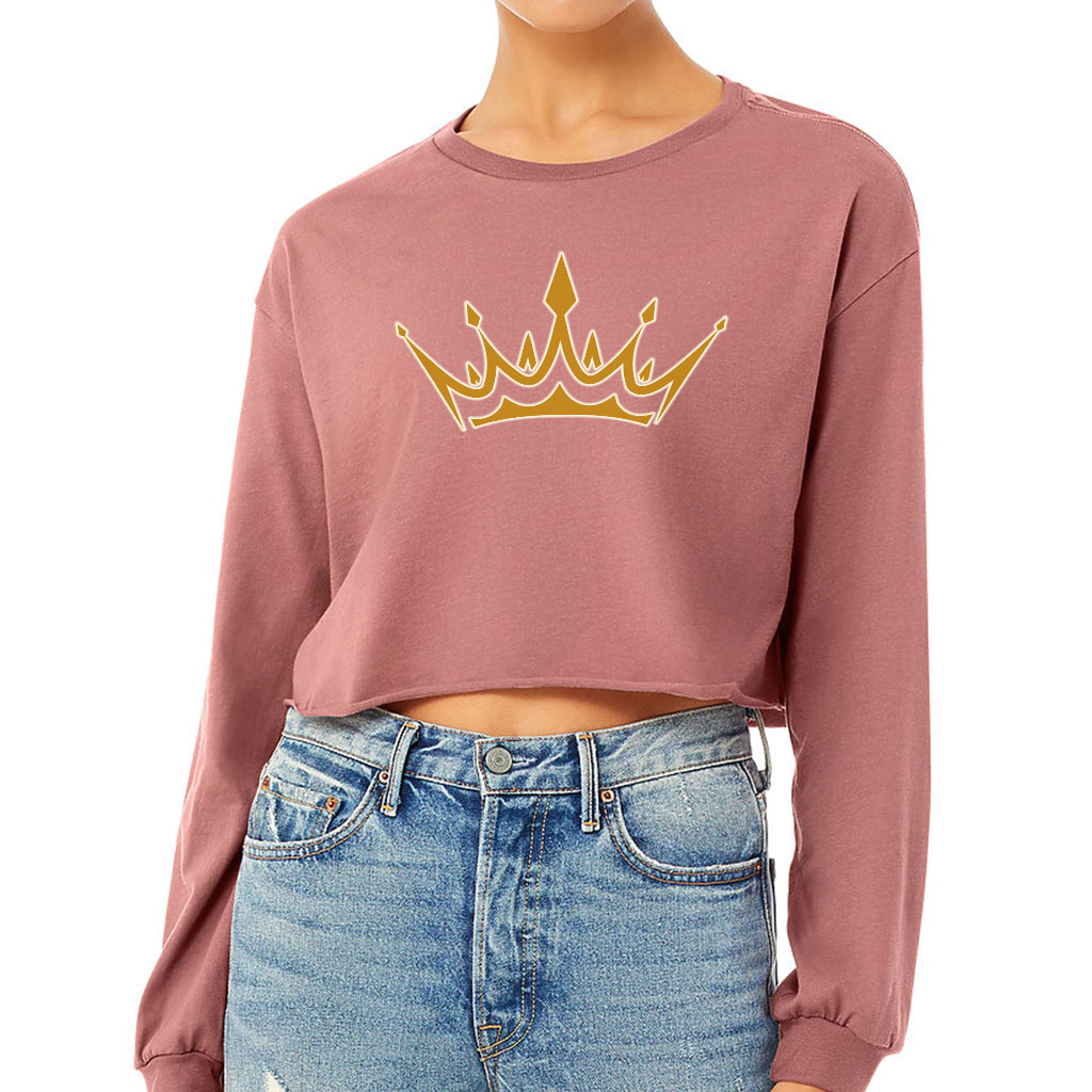 Crown Print Cropped Long Sleeve T-Shirt