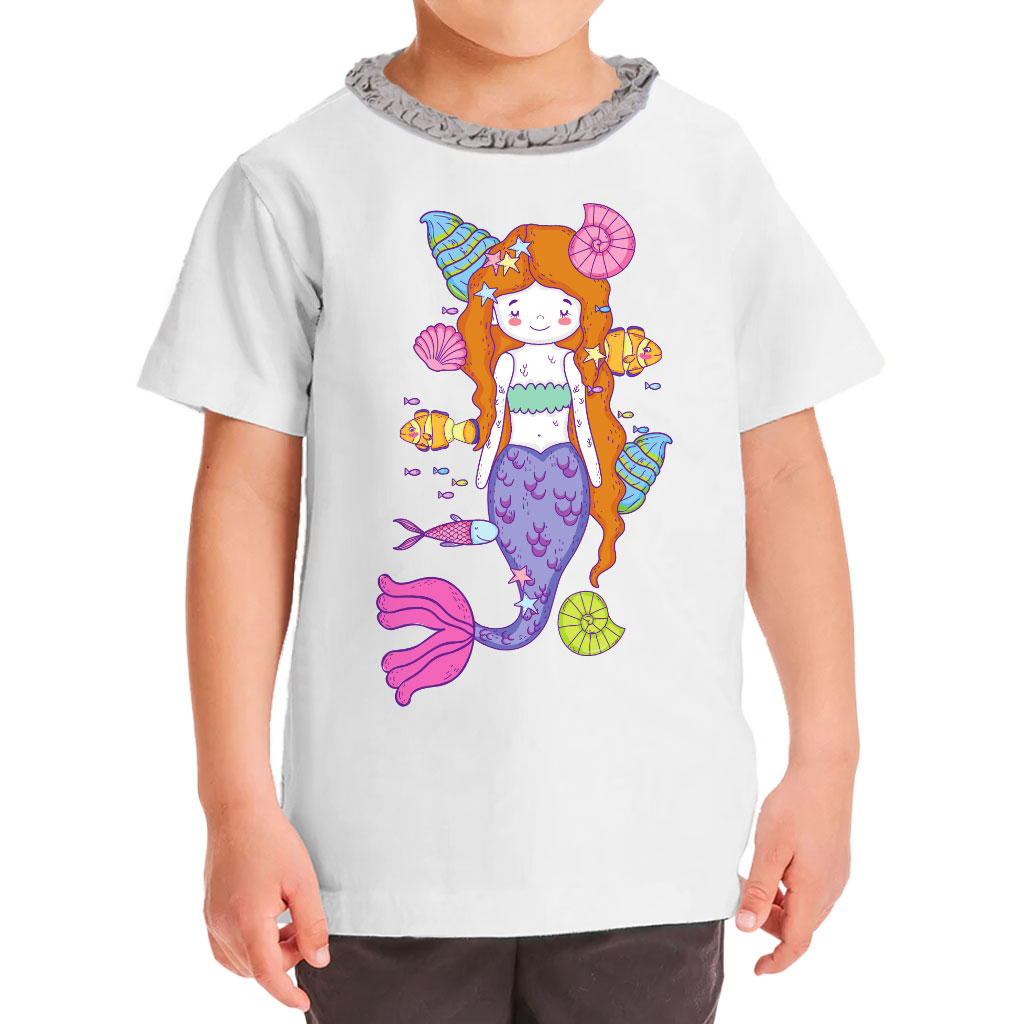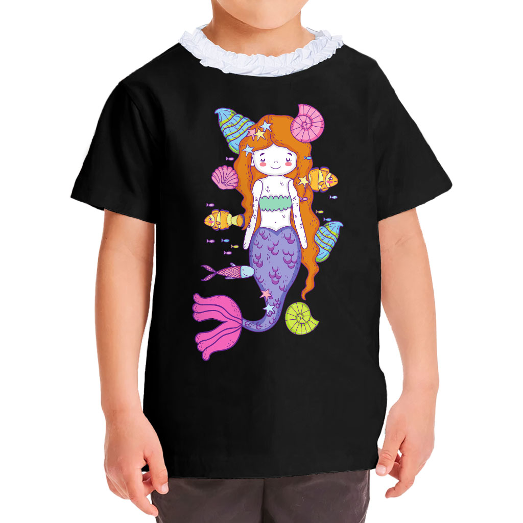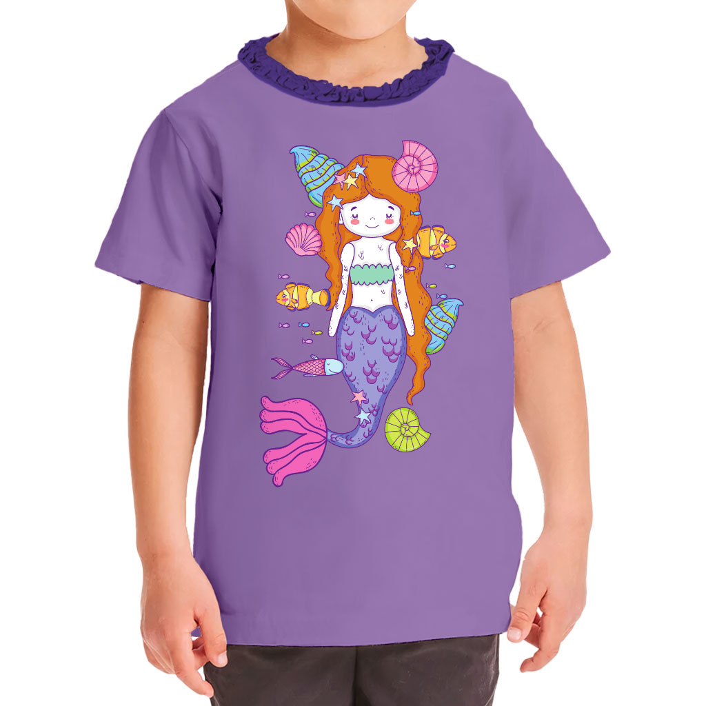Cute Mermaid Girls’ Ruffle Neck T-Shirt