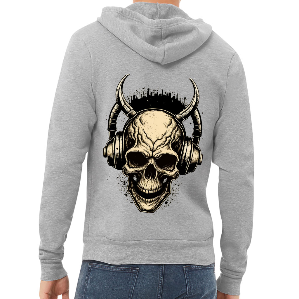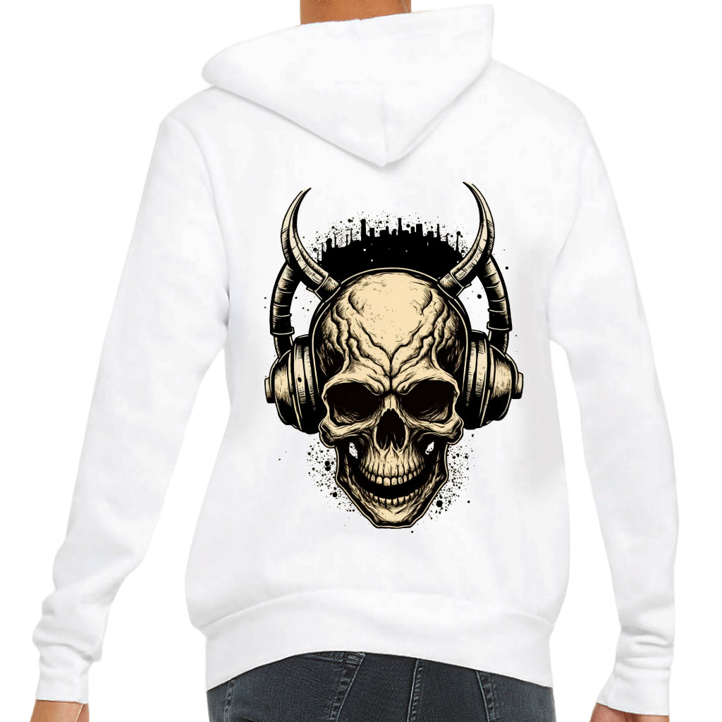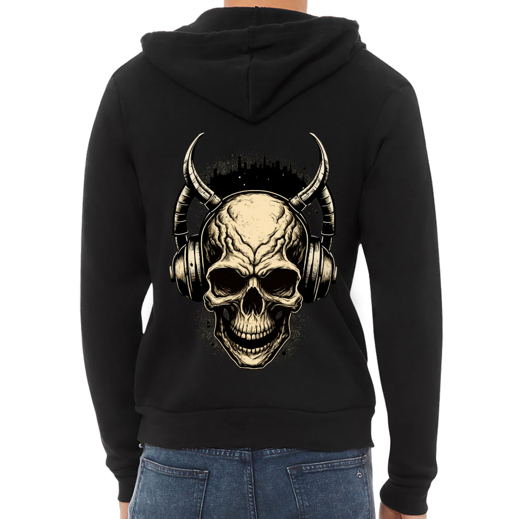 Tackle the elements in casual comfort by wearing Headphones Hooded Sweatshirt. This classic style is perfect for any adventure, from a morning jog to an evening bonfire. Durability has never looked so stylish! Our signature soft, lightweight fabric and ribbed cuffs and waistband make this hoodie stand out among the rest. Enjoy the extra layer of protection provided by a full zip closure with white taping; while white chord drawstring ensures your hoodie will stay snug no matter what activity you’re doing. Plus, kangaroo pockets add a bit of hand-warming flair. Look good and stay comfortable in Scary Hoodie!