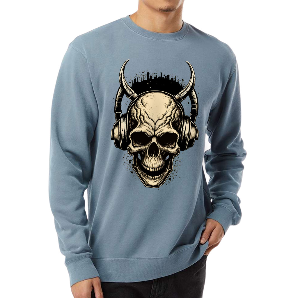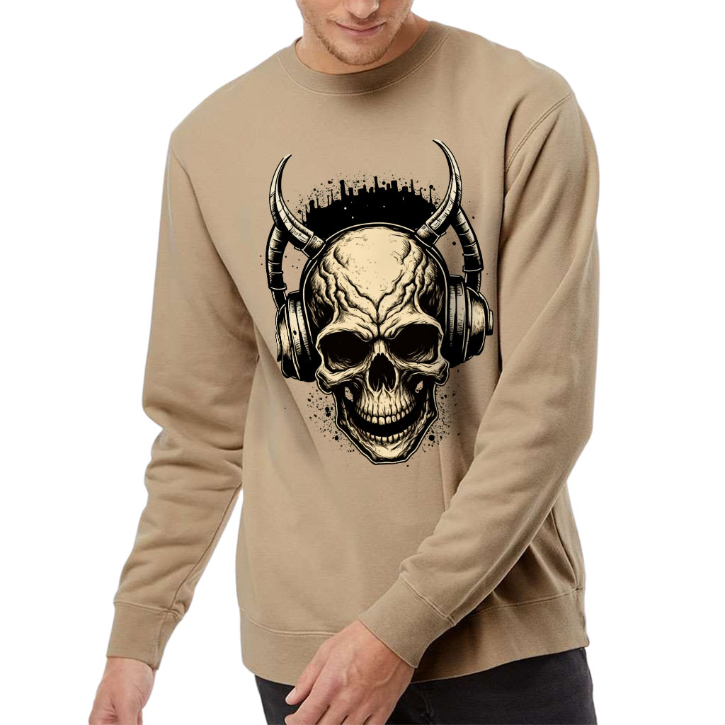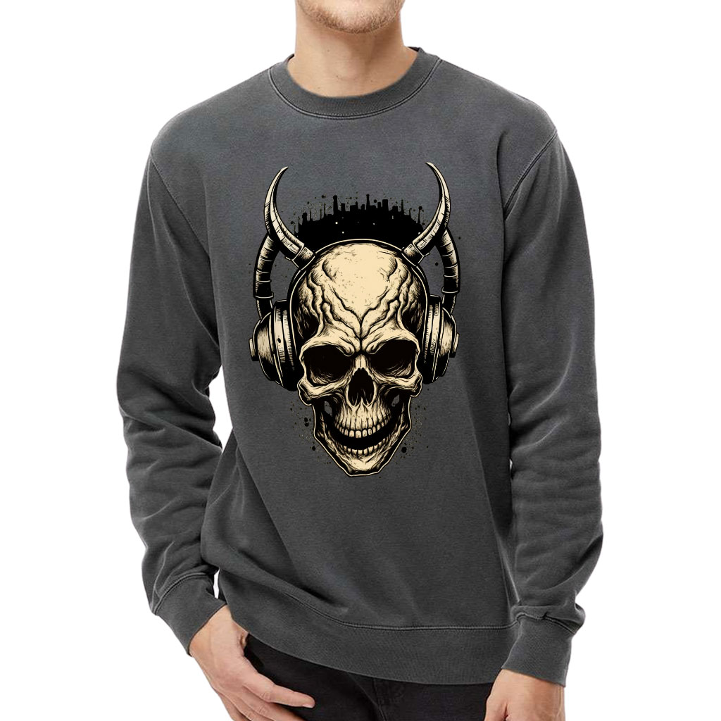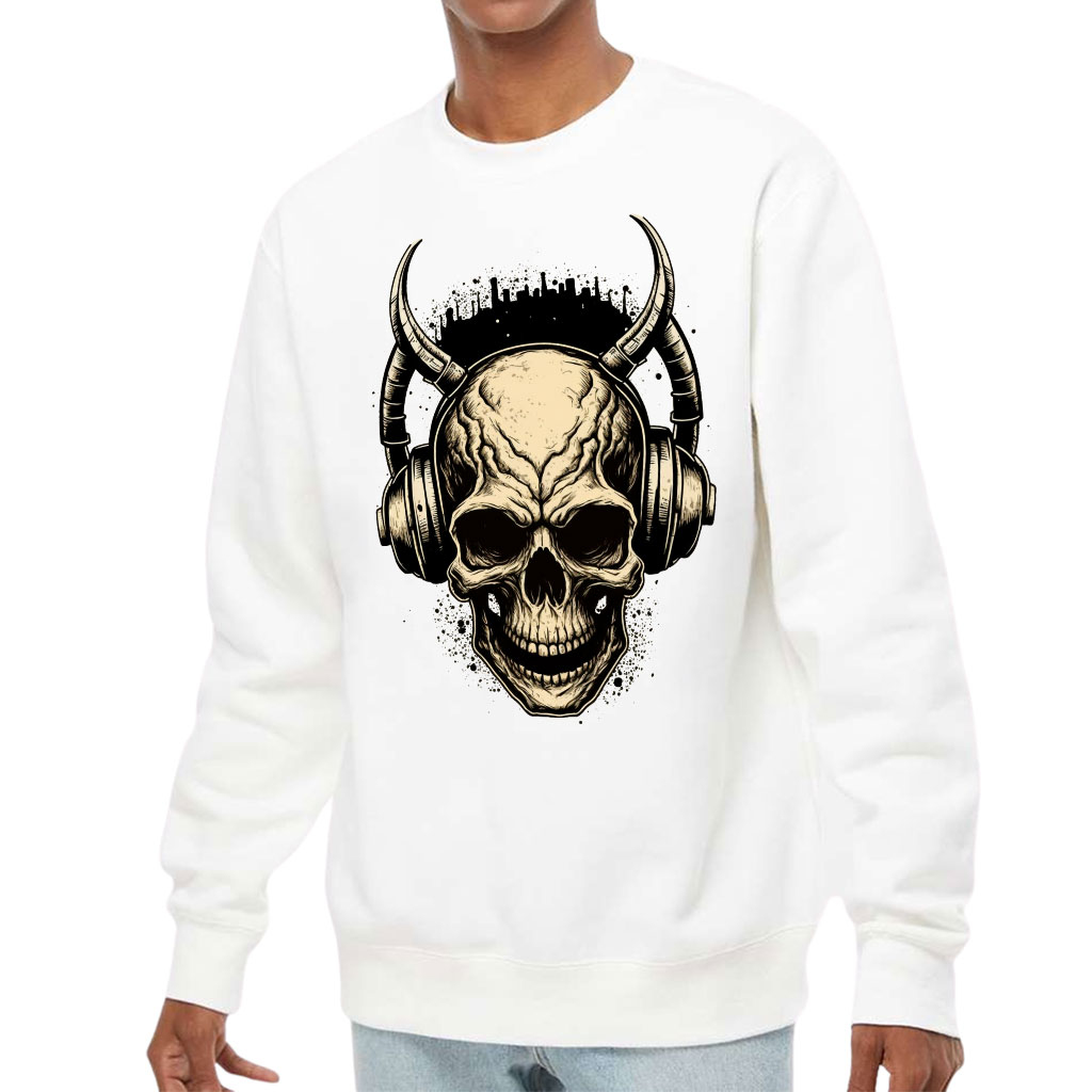 Devil Skull Midweight Sweatshirt – Headphones Crewneck Sweatshirt – Scary Sweatshirt