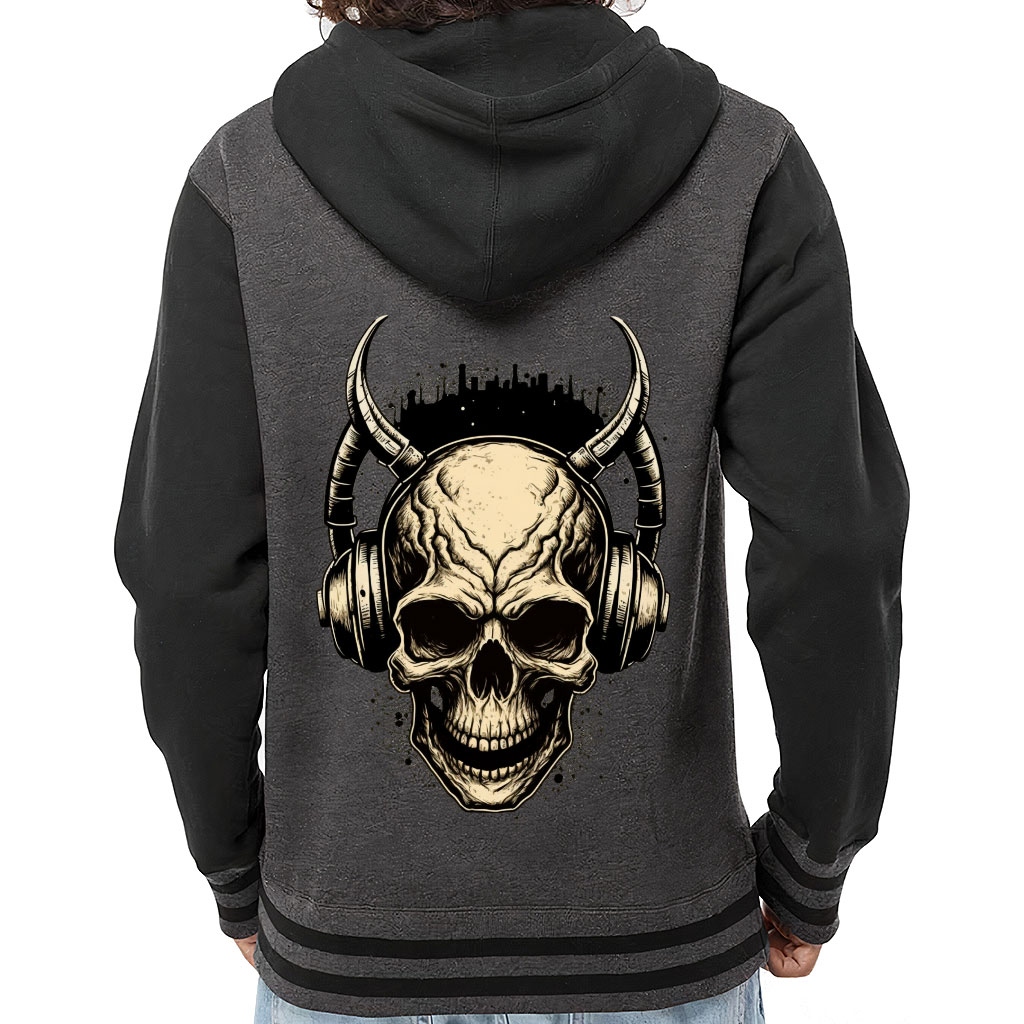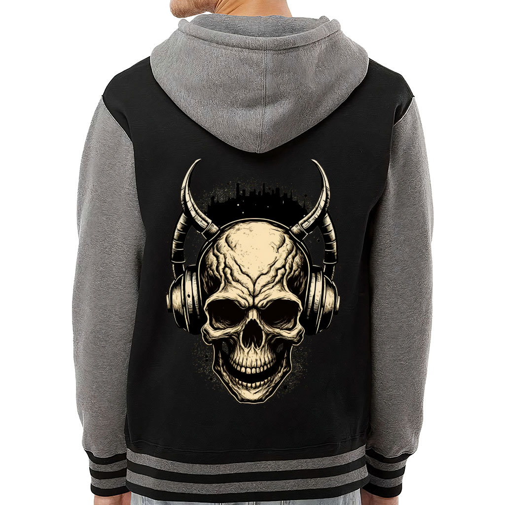 An essential closet staple, Devil Skull Varsity Hoodie is a go-to classic for hiking, training, or just kicking back. Pair it with your favorite shorts, athletic pants, jeans, or any pants you like.