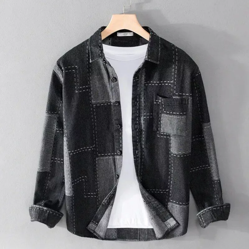 Introducing our Fashion Long Sleeve Denim Shirt for Men, the perfect addition to your wardrobe this season. Embrace the Japanese style lapel and stay on-trend with this high-quality top coat. Crafted with precision and style in mind, this shirt is designed to elevate your casual look effortlessly.