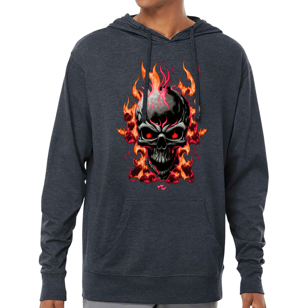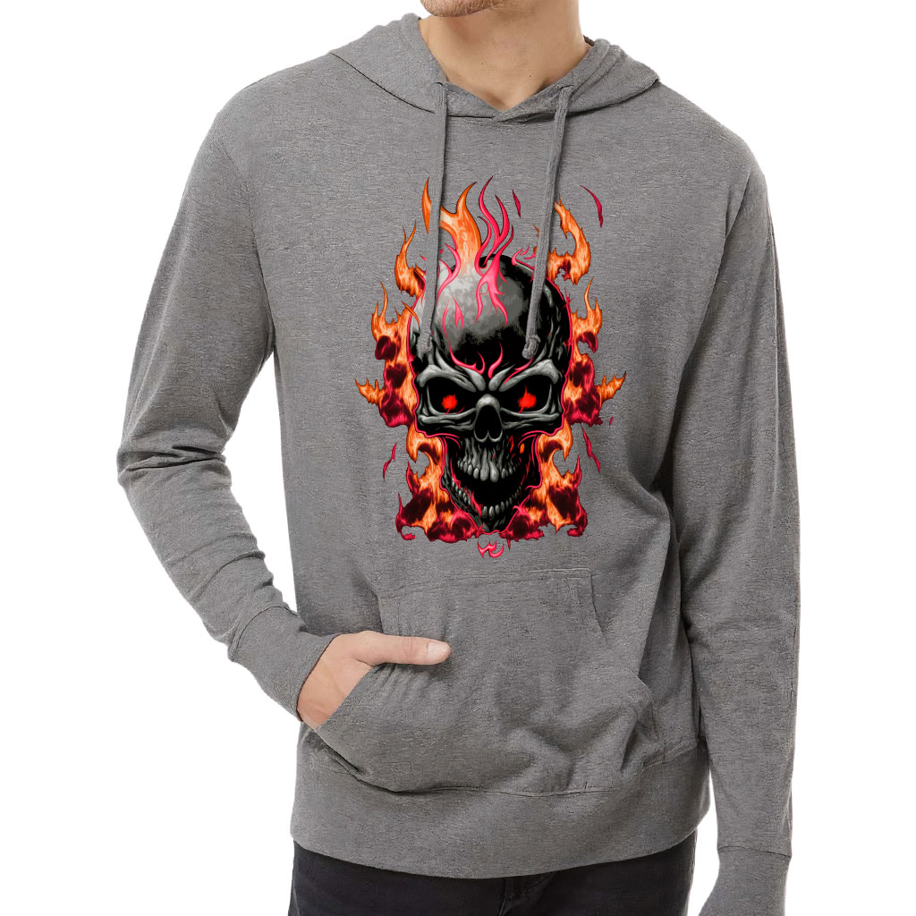 Flame Skull Lightweight Jersey Hoodie works easily with a variety of outfits and is perfect for pairing with shorts, jeans, sneakers, and more. Suitable for summer, spring, autumn, and winter.