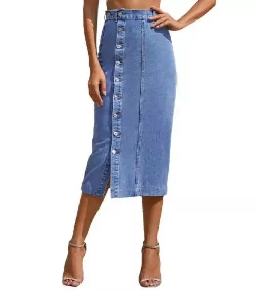 The beauty of our High Waist Denim Maxi Skirt lies in its versatility. Perfect for transitioning from day to night, this skirt is ideal for those sunny afternoons turned evening outings. Pair it with a light blouse and sandals for a daytime look, or dress it up with heels and a statement top for an evening ensemble. The high waist and subtle split detail add a touch of sophistication suitable for every season.