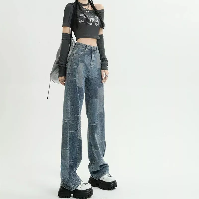 Our wide-leg jeans are versatile enough to be worn throughout the spring and autumn seasons. Whether you’re strolling through the city, attending a class, or going out for a casual brunch, these jeans will be your go-to. Pair them with a cozy sweater and boots for a chic autumn look, or with a light blouse and sneakers for a relaxed spring vibe. The unique plaid pattern and elegant appliques ensure these jeans are not just clothing but a fashion statement.