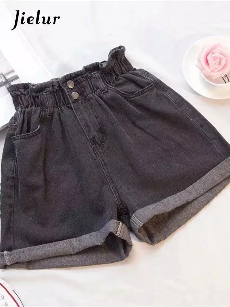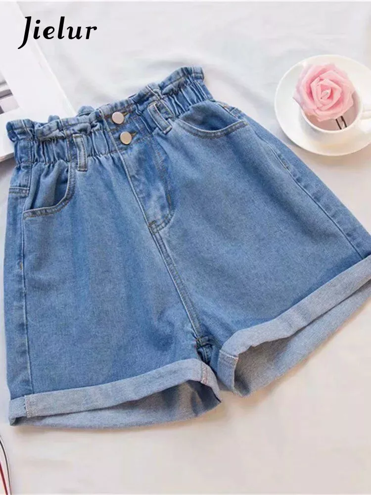 High-Waisted Denim Harem Shorts – Summer Ruffled Casual Elastic Shorts for Women S-5XL