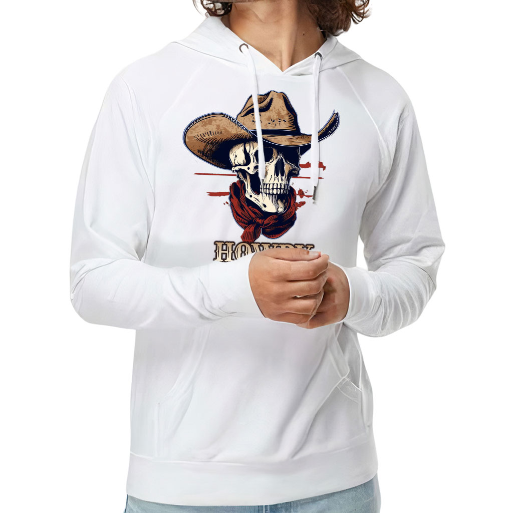 Introducing Cowboy Hooded Sweatshirt – the perfect way to keep warm and look great all at once! This stylish men’s hoodie is brought to life with a loopback terry fabric that makes it soft and comfortable enough for daily wear or exercise. The unique double shoelace drawcords are held by antique silver metal tips, creating an eye-catching design that sets the piece apart from others. Last but not least, this stylish hoodie comes complete with twill neck tape and 1×1 ribbing at its cuffs and waistband. Hat Print Hoodie is the perfect addition to your wardrobe this season!