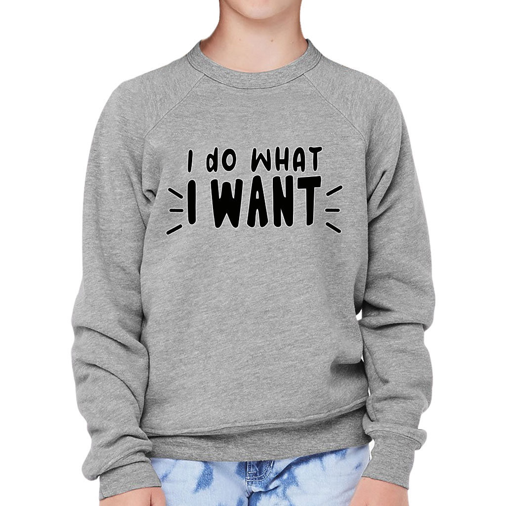 This remarkably soft pullover crewneck sweatshirt lends itself to daily wear and year-round layering. I Do What I Want Kids’ Raglan Sweatshirt features ribbed cuffs and a waistband, a crew neck, and a fashion-forward fleece fabrication.