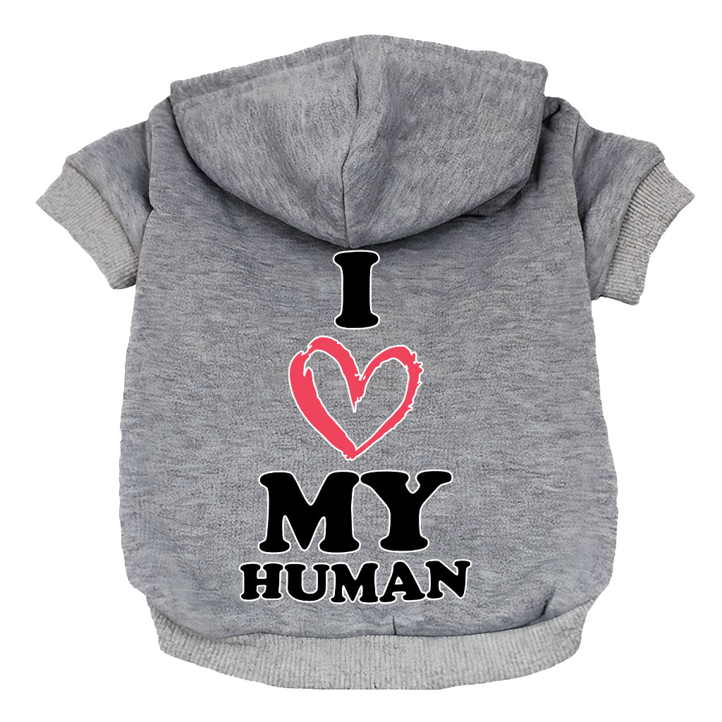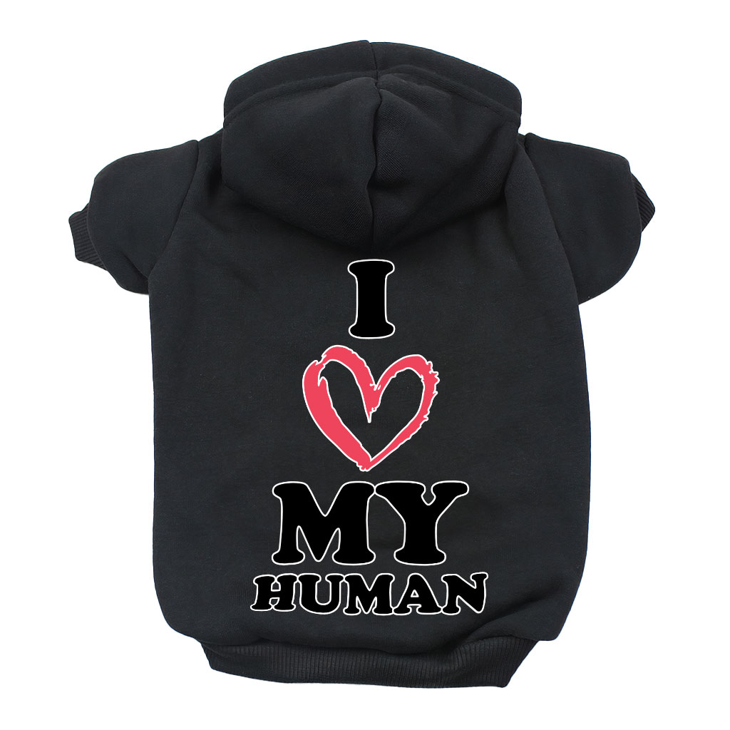 Comfortable, breathable coat to keep your dog warm in cold weather. I Love My Human Dog Hoodie is designed for winter or autumn weather, it has ribbed sleeves and hem for a comfy fit.