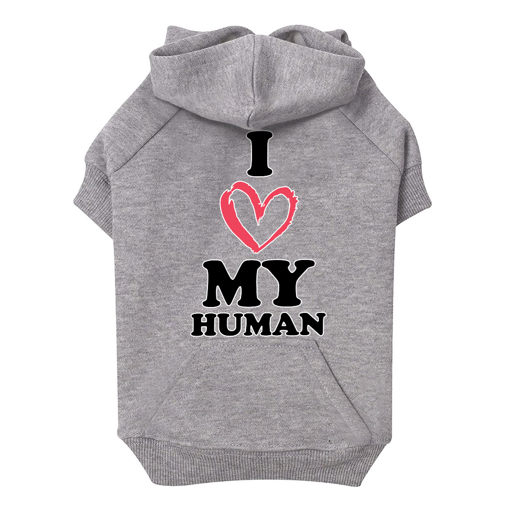I Love My Human Dog Hoodie with Pocket – Text Design Dog Coat – Heart Dog Clothing