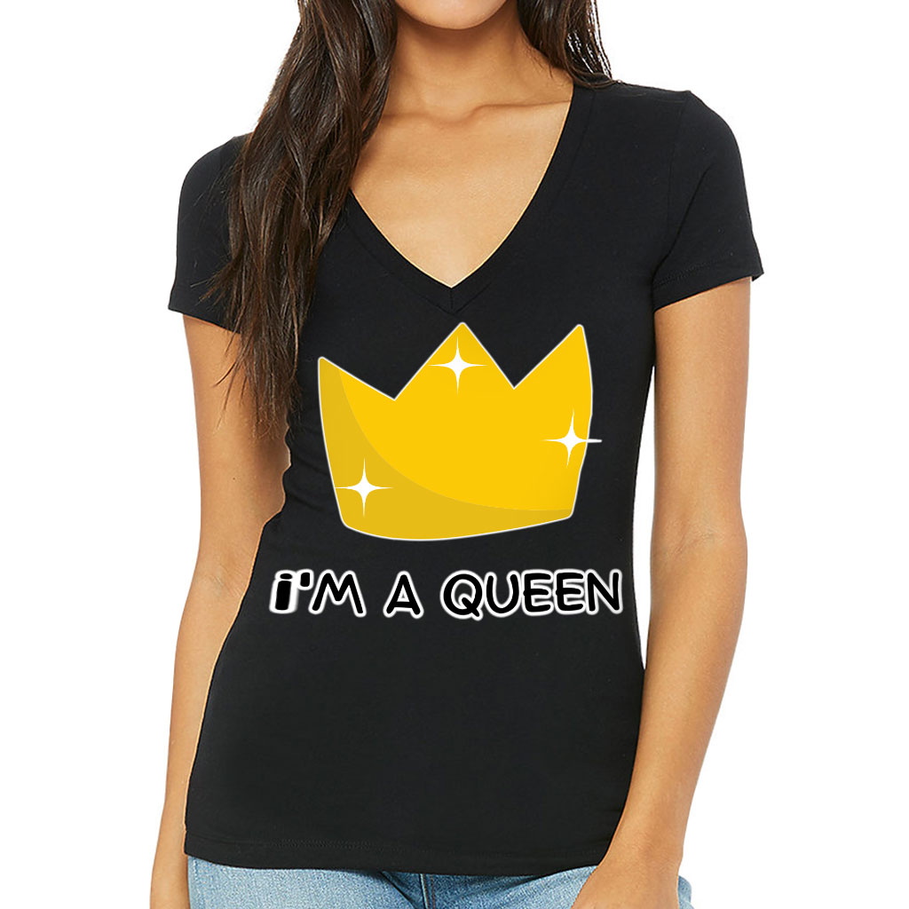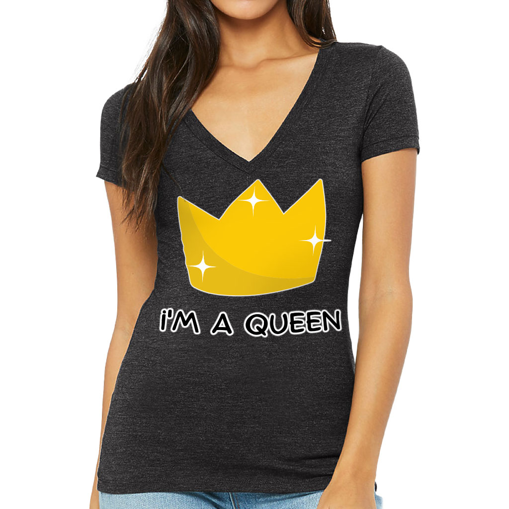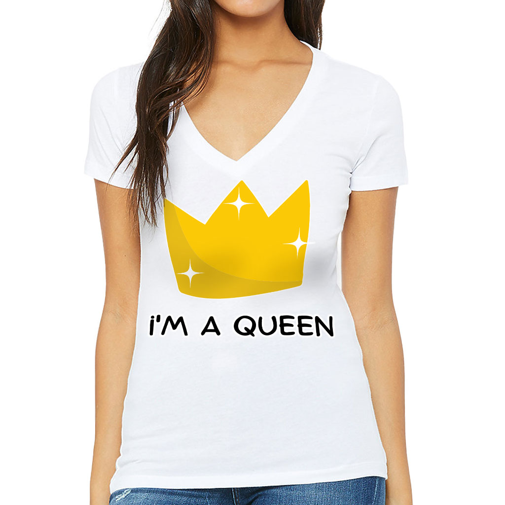 The fabric of our shirt is super soft, lightweight, breathable, and cozy. I’m a Queen Women’s V-Neck T-Shirt features a modern feminine fit, deep V-neck, short sleeves and superior Airlume combed and ring-spun cotton.