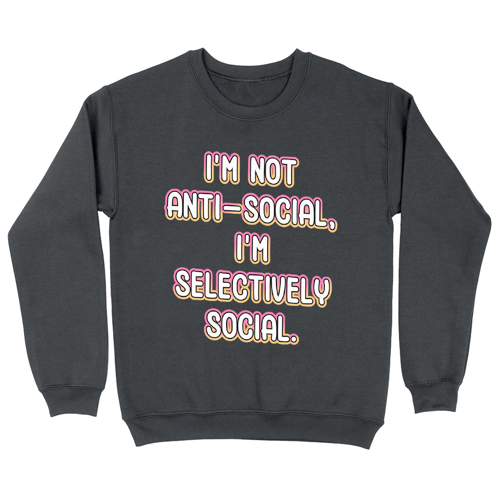I’m Not Anti-social Sweatshirt is made from a 50% U.S. Cotton/50% Polyester blend, this warm