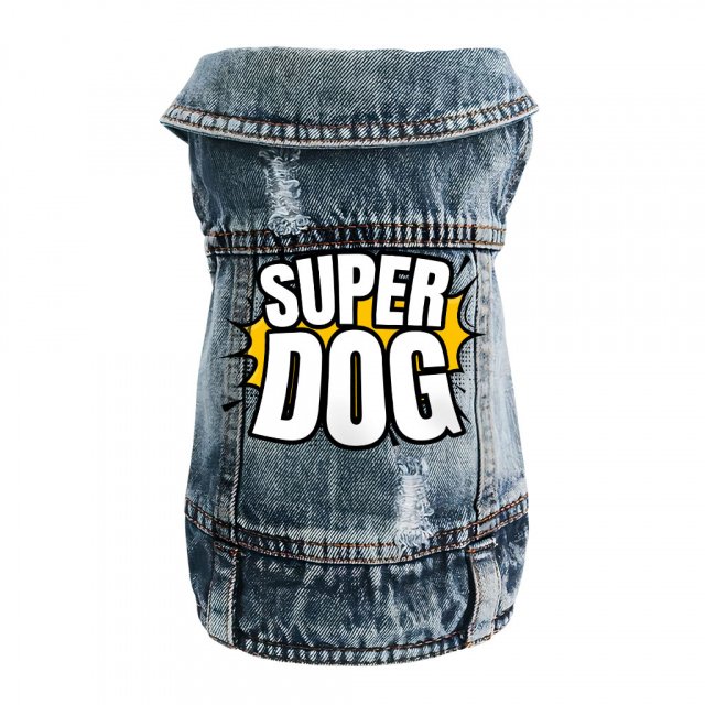 Super Dog Denim Vest – Colorful Dog Denim Jacket – Graphic Dog Clothing