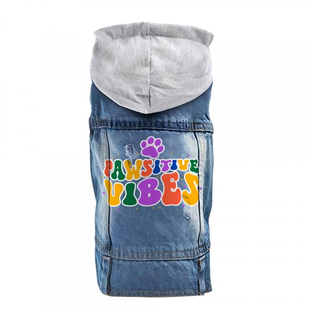 Pawsitive Vibes Dog Denim Jacket – Colorful Text Dog Denim Coat – Cool Dog Clothing