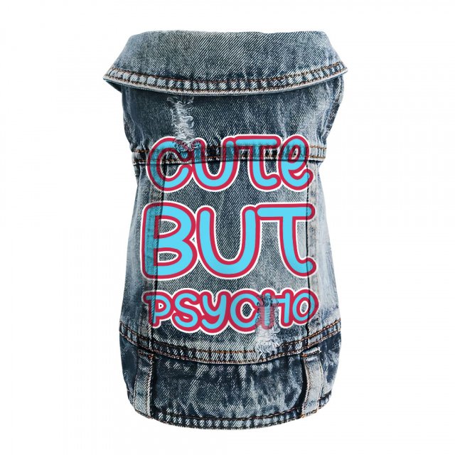 Cute but Psycho Dog Denim Jacket – Beautiful Dog Denim Coat – Phrase Dog Clothing