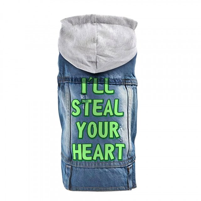 I’ll Steal Your Heart Dog Denim Jacket – Art Print Dog Denim Coat – Word Design Dog Clothing