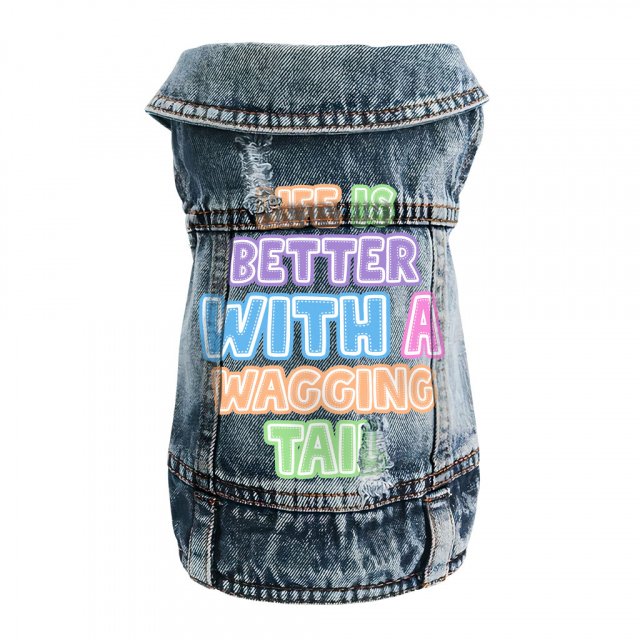 Life Is Better With a Wagging Tail Dog Denim Vest – Print Dog Denim Jacket – Art Dog Clothing
