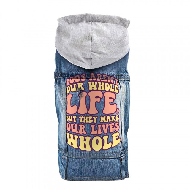 Dogs Make Our Lives Whole Dog Denim Jacket – Quote Dog Denim Coat – Phrase Dog Clothing