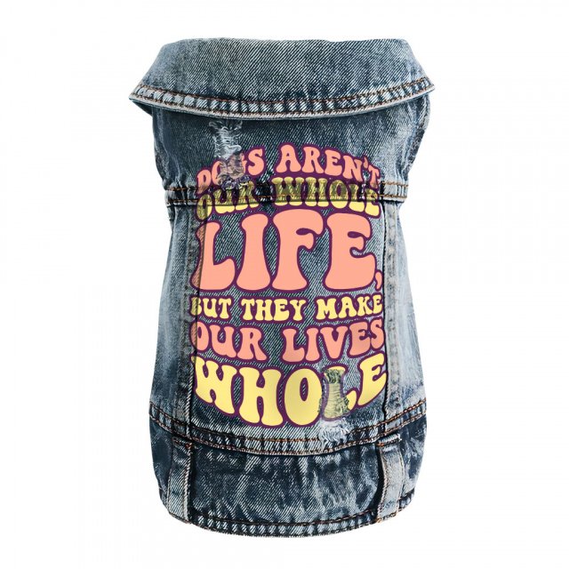 Dogs Make Our Lives Whole Dog Denim Vest – Quote Dog Denim Jacket – Phrase Dog Clothing