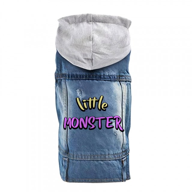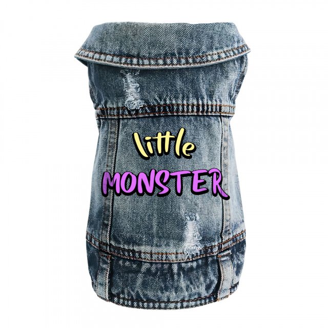 Little Monster Dog Denim Jacket – Unique Dog Denim Coat – Word Print Dog Clothing