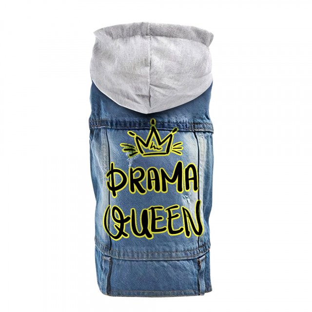 Drama Queen Dog Denim Jacket – Funny Dog Denim Coat – Themed Dog Clothing