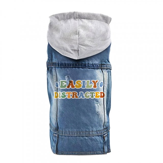 Easily Distracted Dog Denim Jacket – Themed Dog Denim Coat – Colorful Dog Clothing