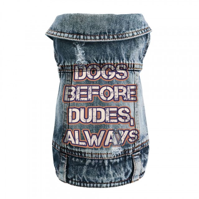 Dogs Before Dudes Dog Denim Jacket – Dog Theme Dog Denim Coat – Funny Dog Clothing