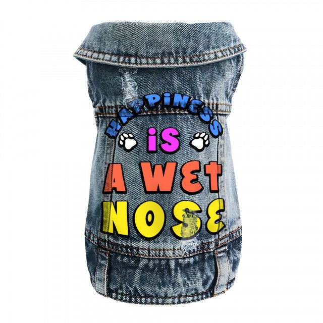 Happiness Is a Wet Nose Dog Denim Vest – Colorful Dog Denim Jacket – Quote Dog Clothing